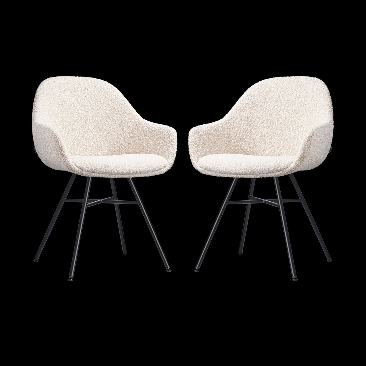 Creëer een stijlvolle sfeer in de eetkamer met de set van twee Noa-Mae eetkamerstoelen met armleuningen van Nolon.