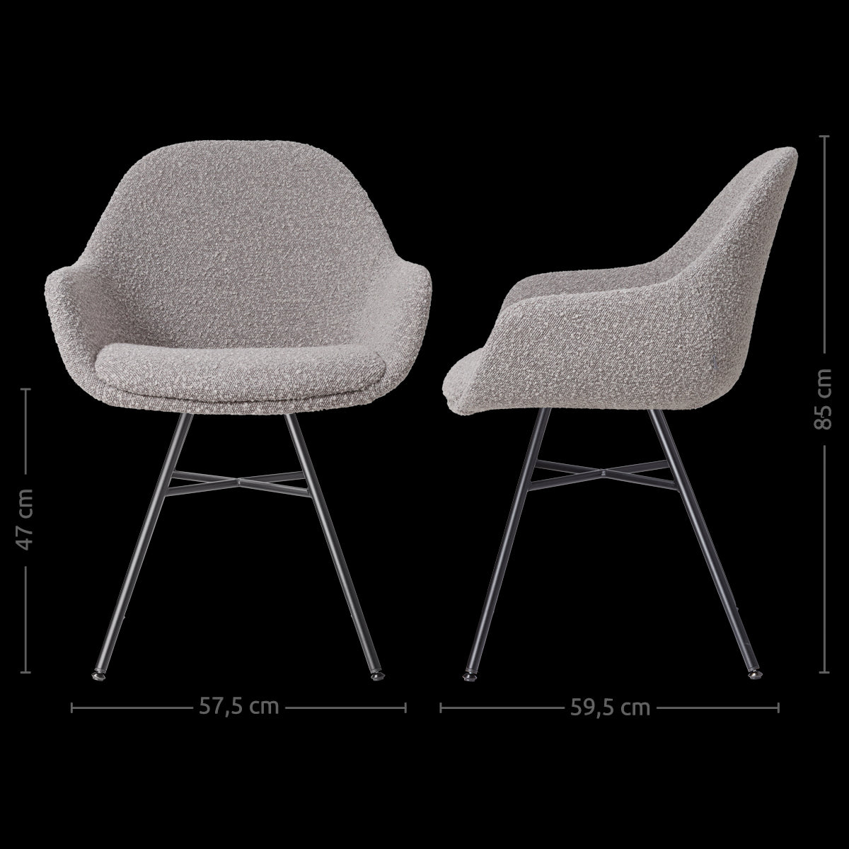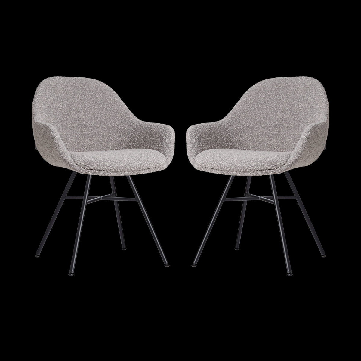 Creëer een stijlvolle sfeer in de eetkamer met de set van twee Noa-Mae eetkamerstoelen met armleuningen van Nolon.