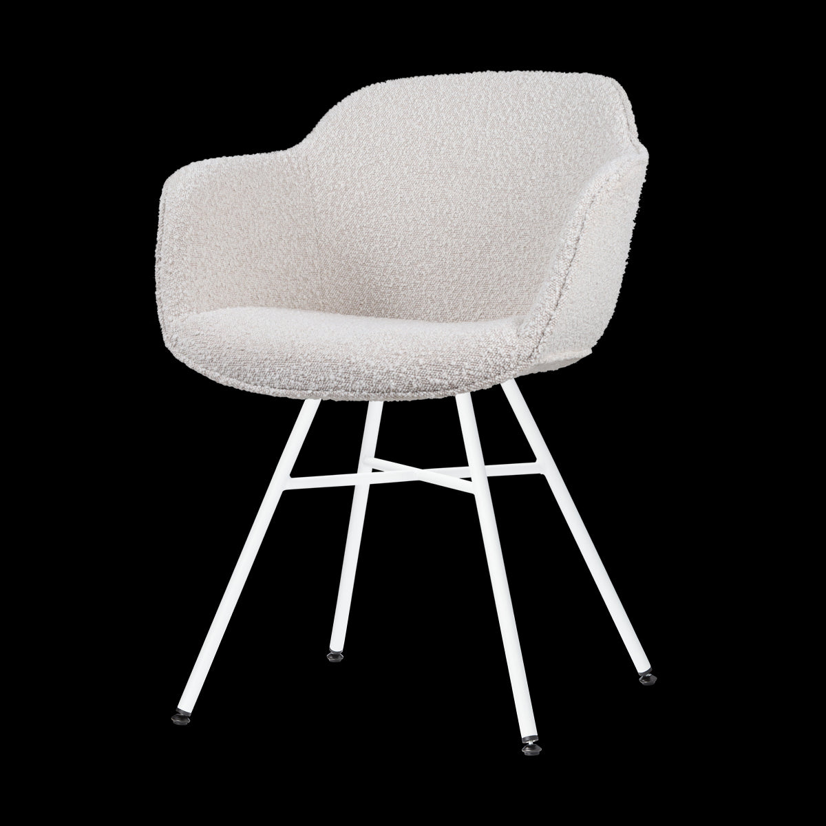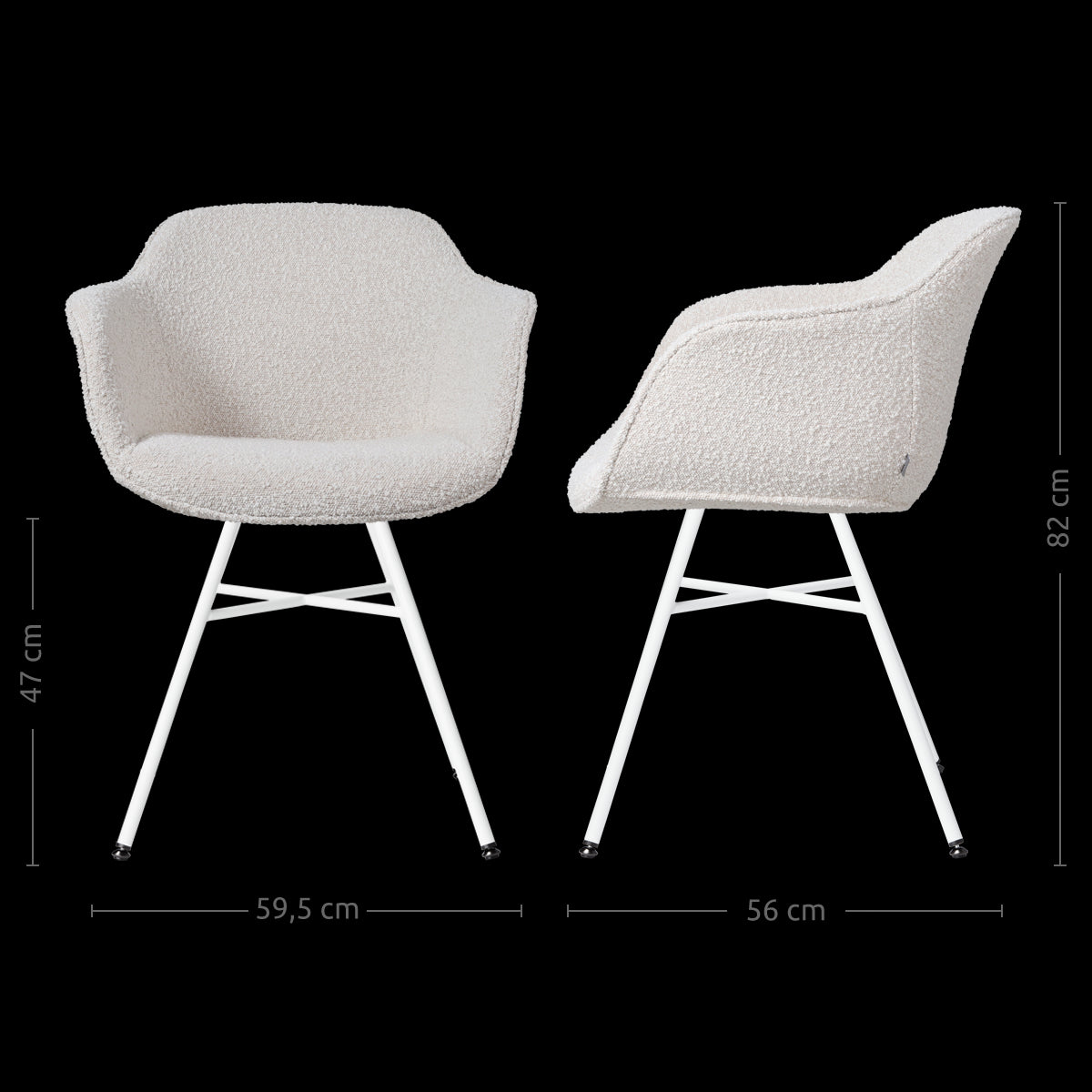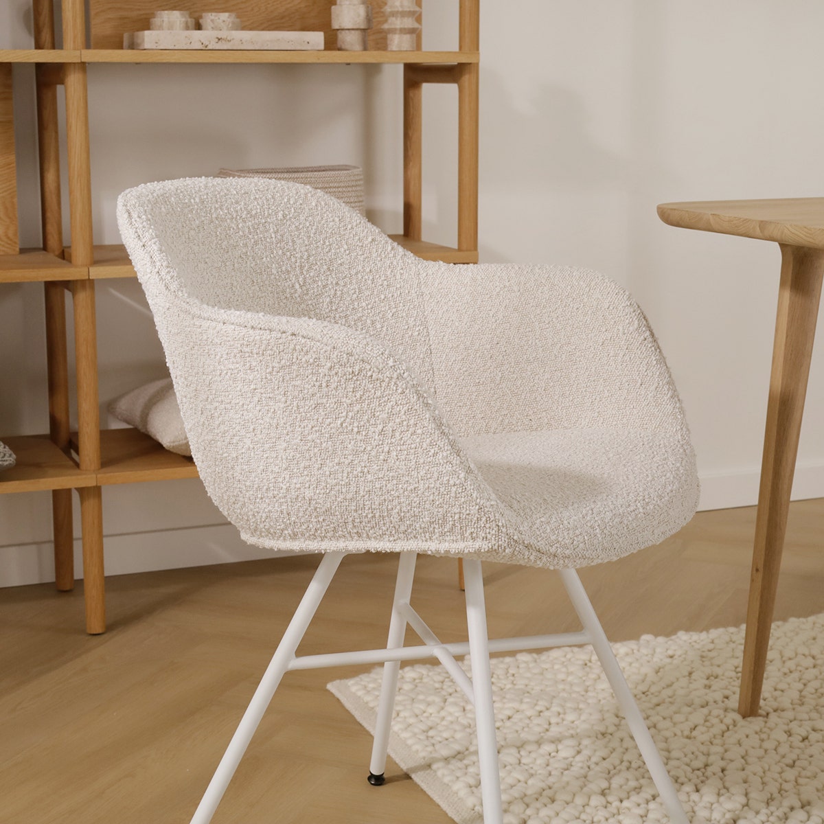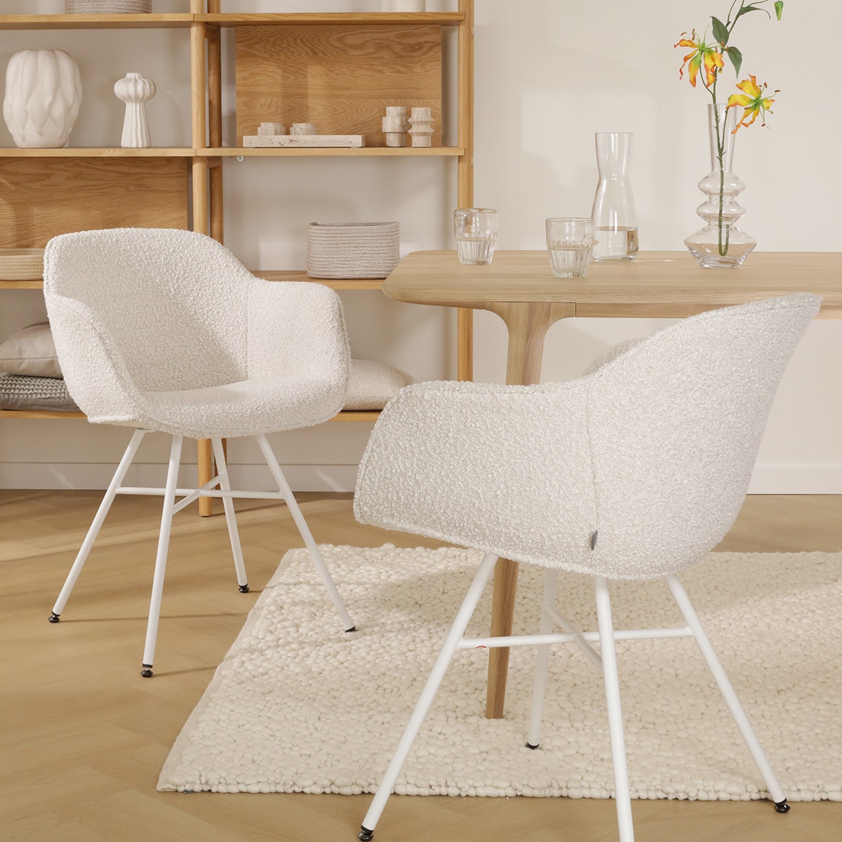 - De bouclé bekleding van de zitting zorgt voor een warme sfeer in de eethoek