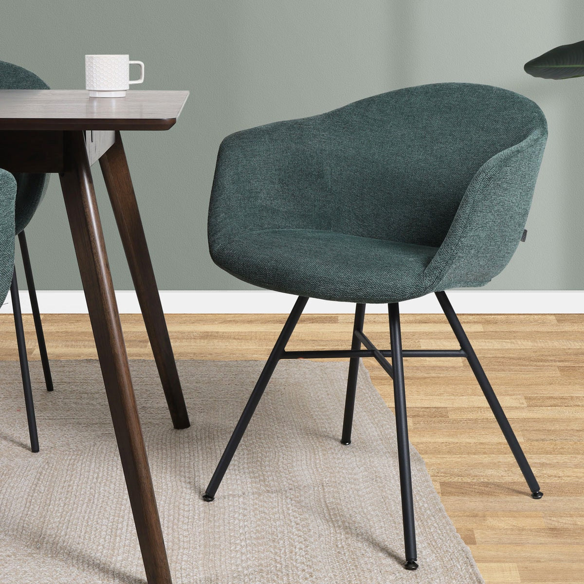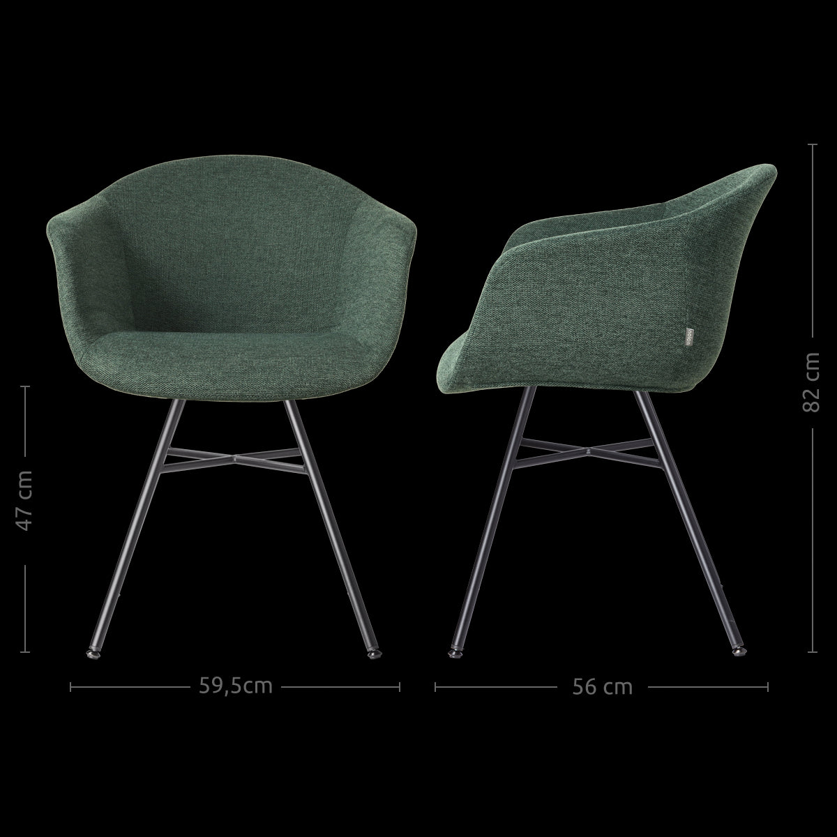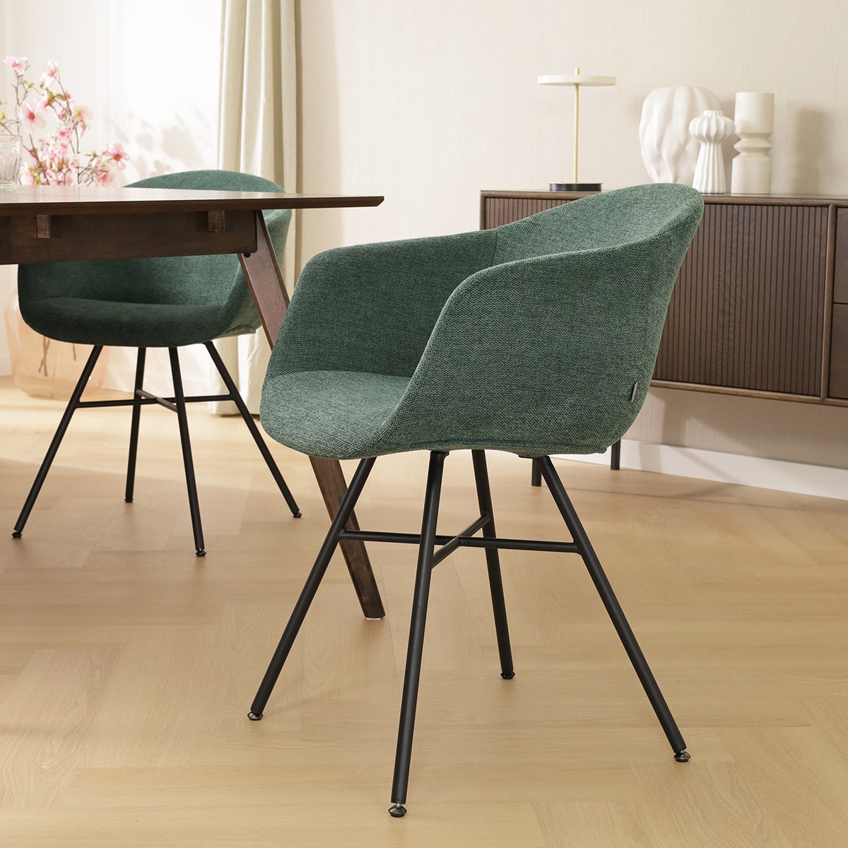 Nolon Noa-Otis Eetkamerstoel Donkergroen - met Armleuning - Zwart