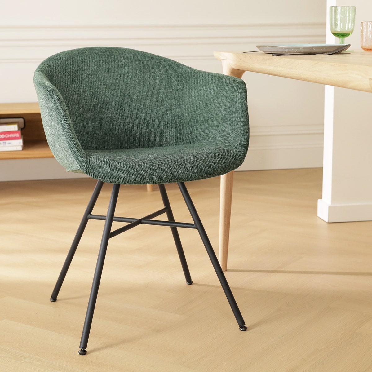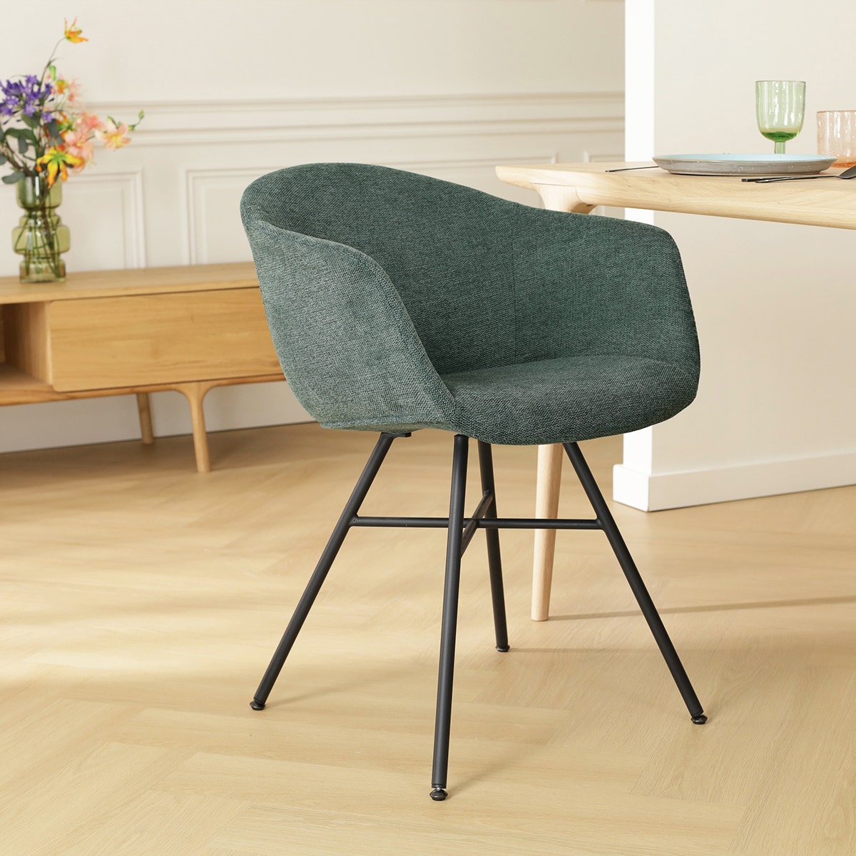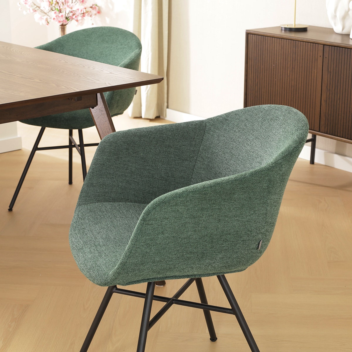 Nolon Noa-Otis Eetkamerstoel Donkergroen - met Armleuning - Zwart