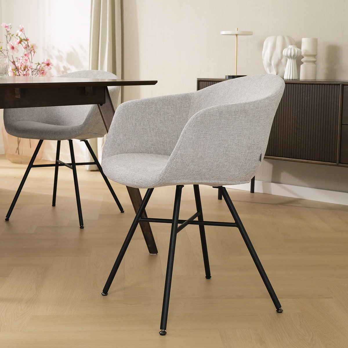 De stoffen eetkamerstoel Noa-Otis van Nolon is een geweldige toevoeging aan jouw eettafel.