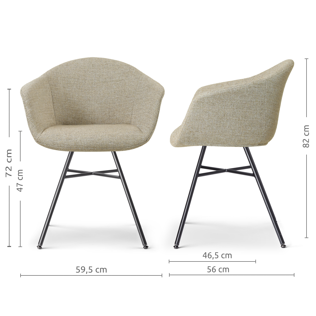 - Deze stoel oplopende armleuningen van 69-74 cm. Controleer altijd even of deze wel onder de tafel passen.