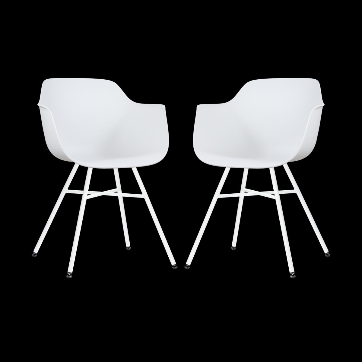 De set Noa-Puk eetkamerstoelen zijn twee moderne kunststof eetkamerstoelen met comfortabele armleuningen van het merk Nolon.