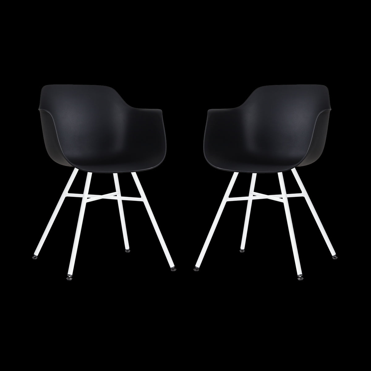 De set Noa-Puk eetkamerstoelen zijn twee moderne kunststof eetkamerstoelen met comfortabele armleuningen van het merk Nolon.