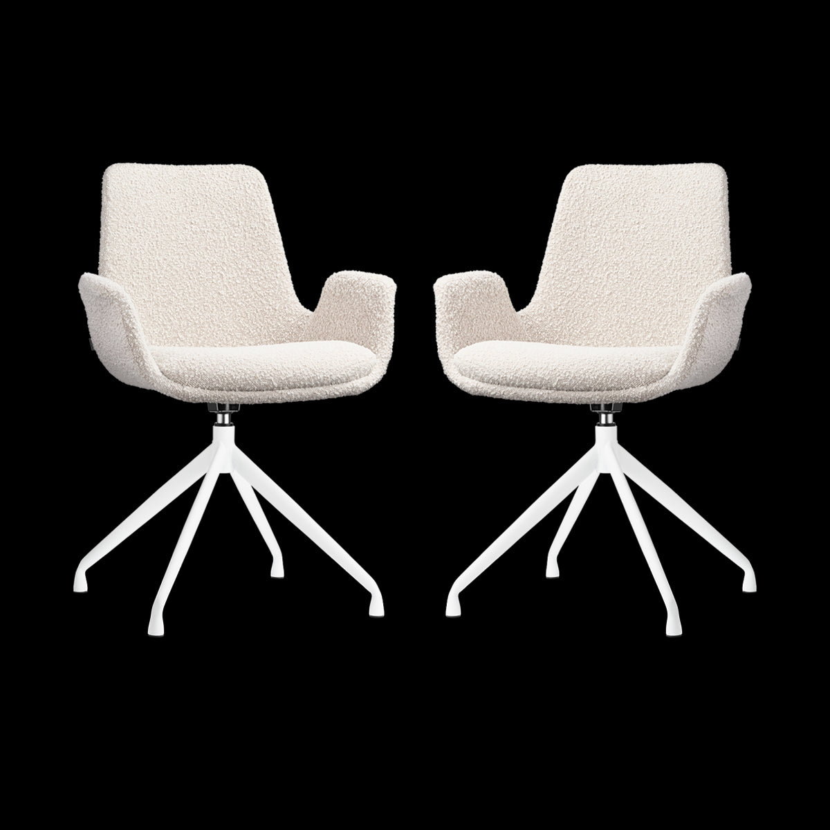 Nolon Nola-Eef Draaibare Eetkamerstoelen Bouclé Beige - Wit - 2x