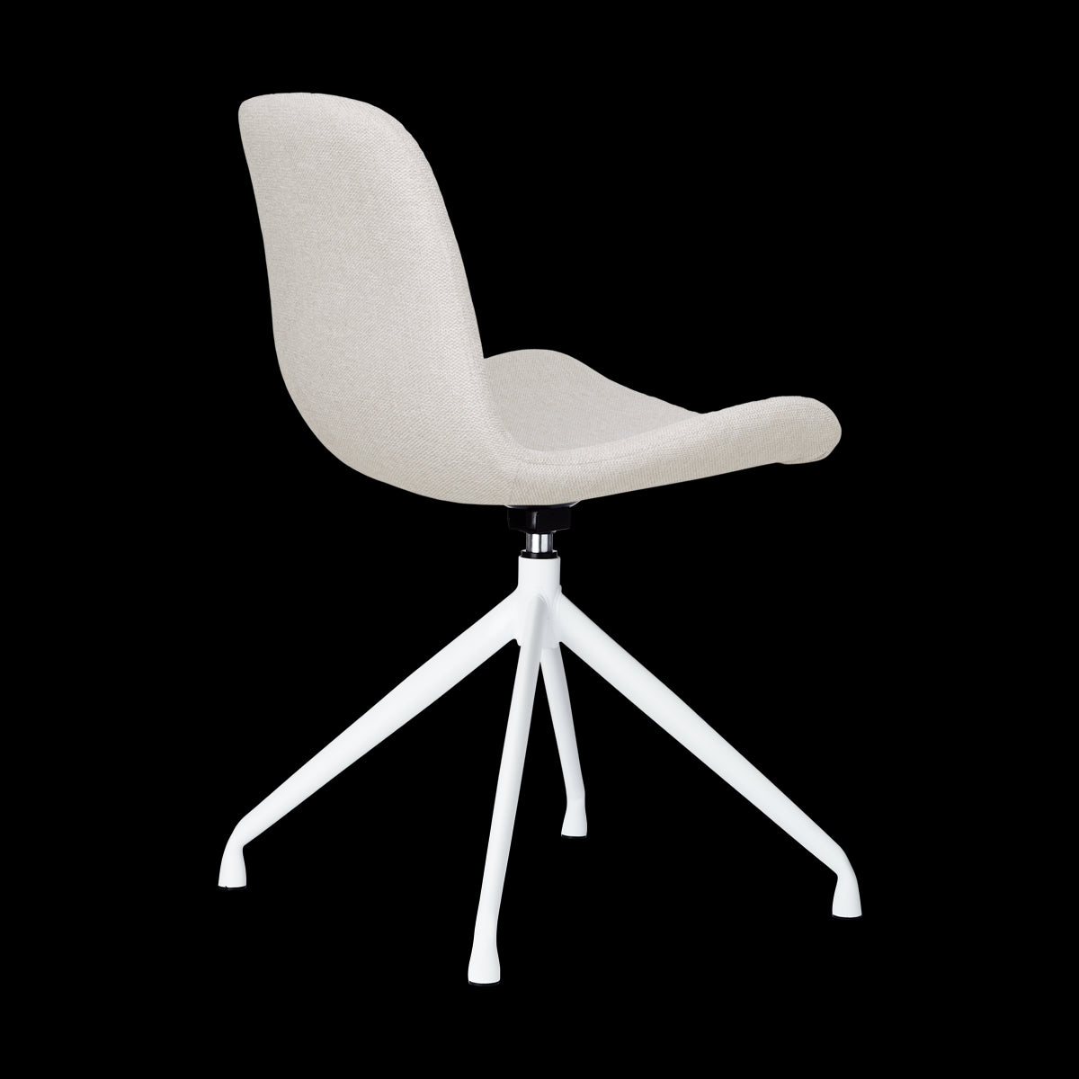 Deze eetkamerstoel heeft een tijdloos design dat naadloos in elke interieurstijl toe te passen is. De eetkamerstoel heeft een praktisch metalen onderstel met draaifunctie. Hierdoor zit je flexibel aan de eettafel en kan je gemakkelijk in en uit stappen. De zitting is volledig bekleed met stof en is ontworpen met een gevleugeld zitvlak. Dit biedt een zacht en comfortabel oppervlak om op te zitten. Dankzij de afwezigheid van armleuningen neemt de Nola-Fé eetkamerstoel minder ruimte in rond de tafel en past hij bovendien onder iedere eettafel. Kies uit een assortiment van prachtige kleuren en verschillende materialen voor de stoffen bekleding, waaronder teddystof en ribstof.