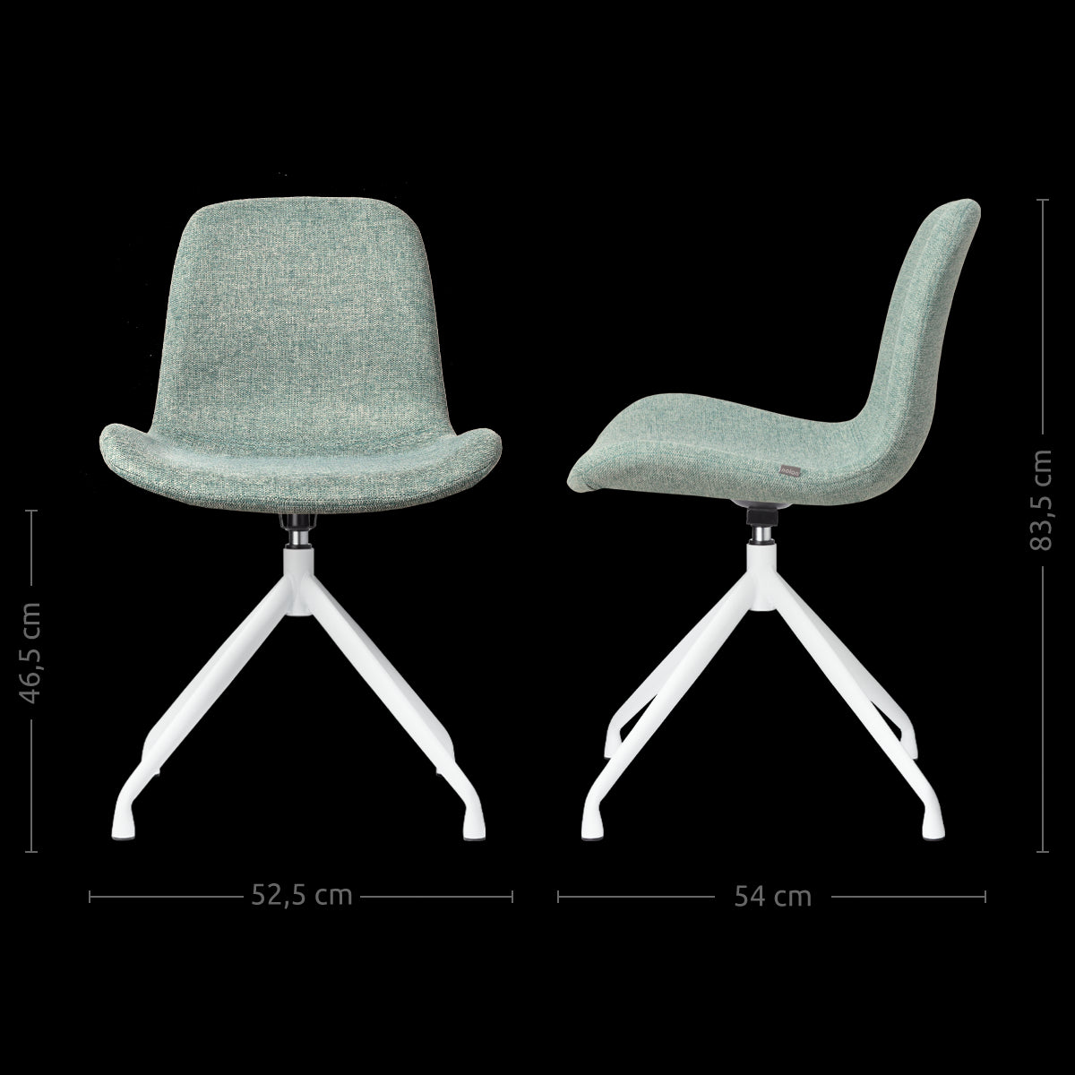 Deze eetkamerstoel heeft een tijdloos design dat naadloos in elke interieurstijl toe te passen is. De eetkamerstoel heeft een praktisch metalen onderstel met draaifunctie. Hierdoor zit je flexibel aan de eettafel en kan je gemakkelijk in en uit stappen. De zitting is volledig bekleed met stof en is ontworpen met een gevleugeld zitvlak. Dit biedt een zacht en comfortabel oppervlak om op te zitten. Dankzij de afwezigheid van armleuningen neemt de Nola-Fé eetkamerstoel minder ruimte in rond de tafel en past hij bovendien onder iedere eettafel. Kies uit een assortiment van prachtige kleuren en verschillende materialen voor de stoffen bekleding, waaronder teddystof en ribstof.