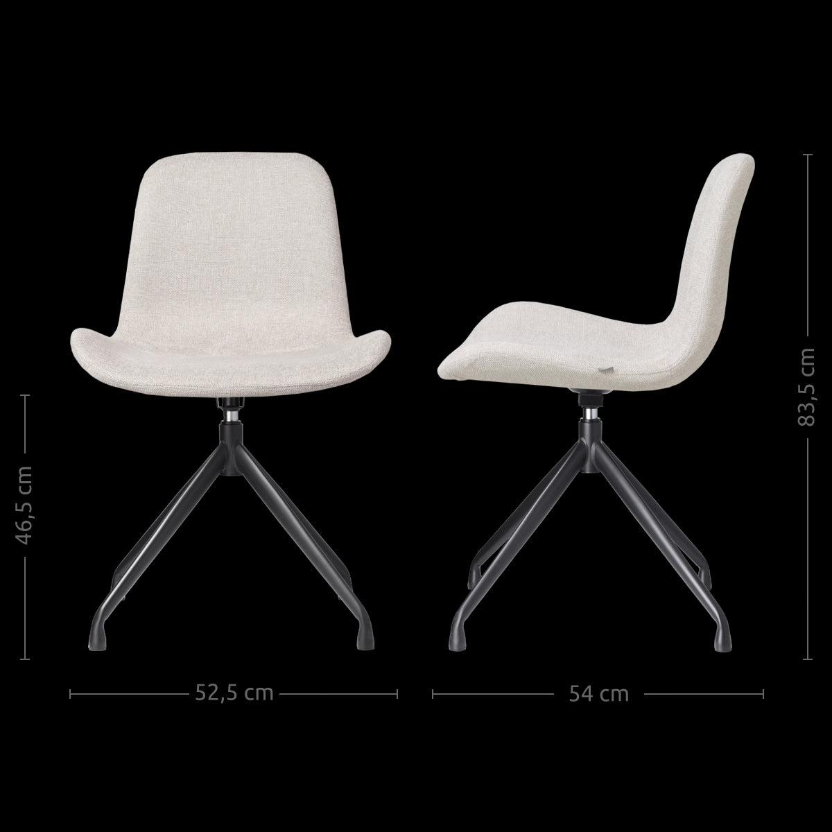Deze eetkamerstoel heeft een tijdloos design dat naadloos in elke interieurstijl toe te passen is. De eetkamerstoel heeft een praktisch metalen onderstel met draaifunctie. Hierdoor zit je flexibel aan de eettafel en kan je gemakkelijk in en uit stappen. De zitting is volledig bekleed met stof en is ontworpen met een gevleugeld zitvlak. Dit biedt een zacht en comfortabel oppervlak om op te zitten. Dankzij de afwezigheid van armleuningen neemt deze stoel minder ruimte in rond de tafel en past hij bovendien onder iedere eettafel. Kies uit een assortiment van prachtige kleuren en verschillende materialen voor de stoffen bekleding, waaronder teddystof, ribstof en bouclé.