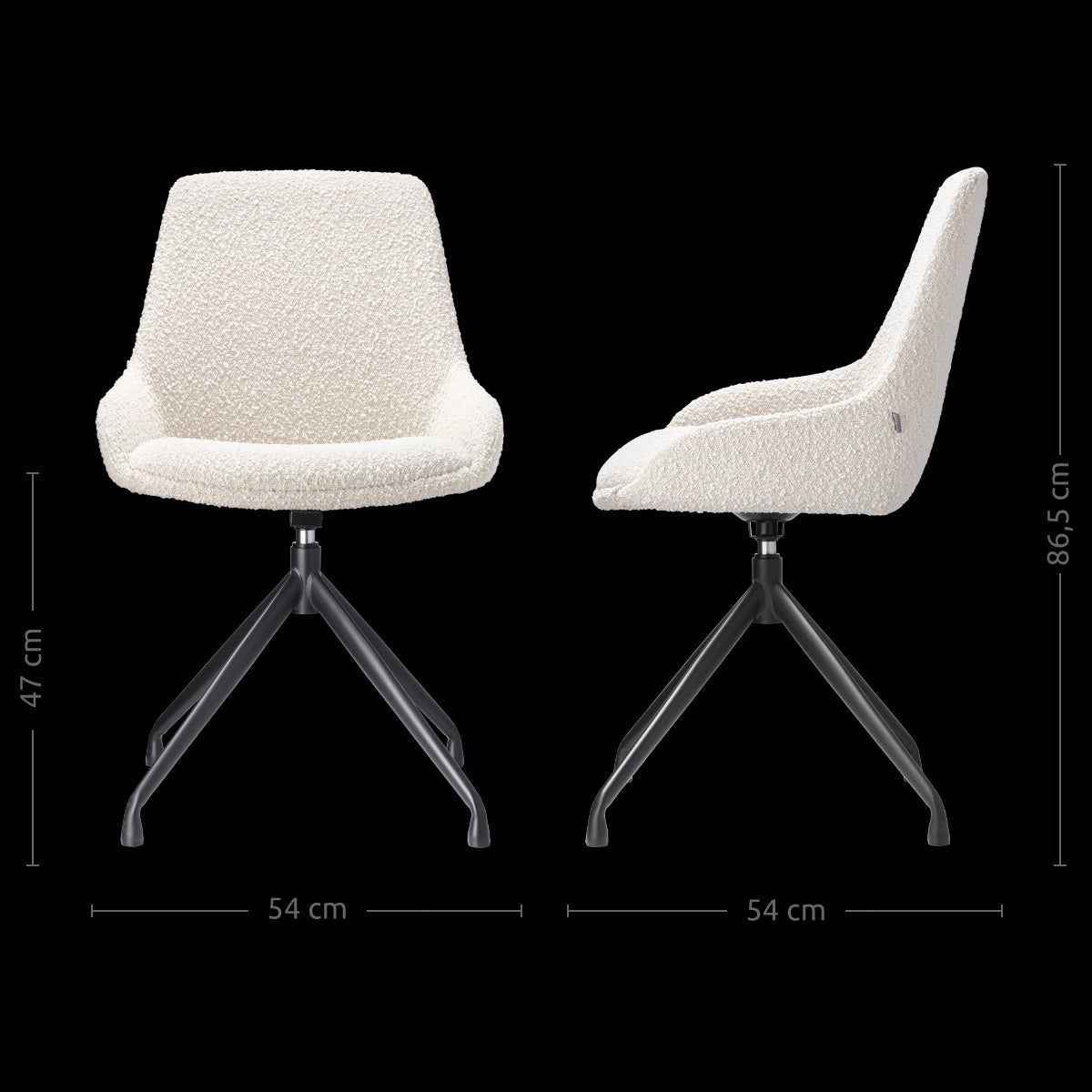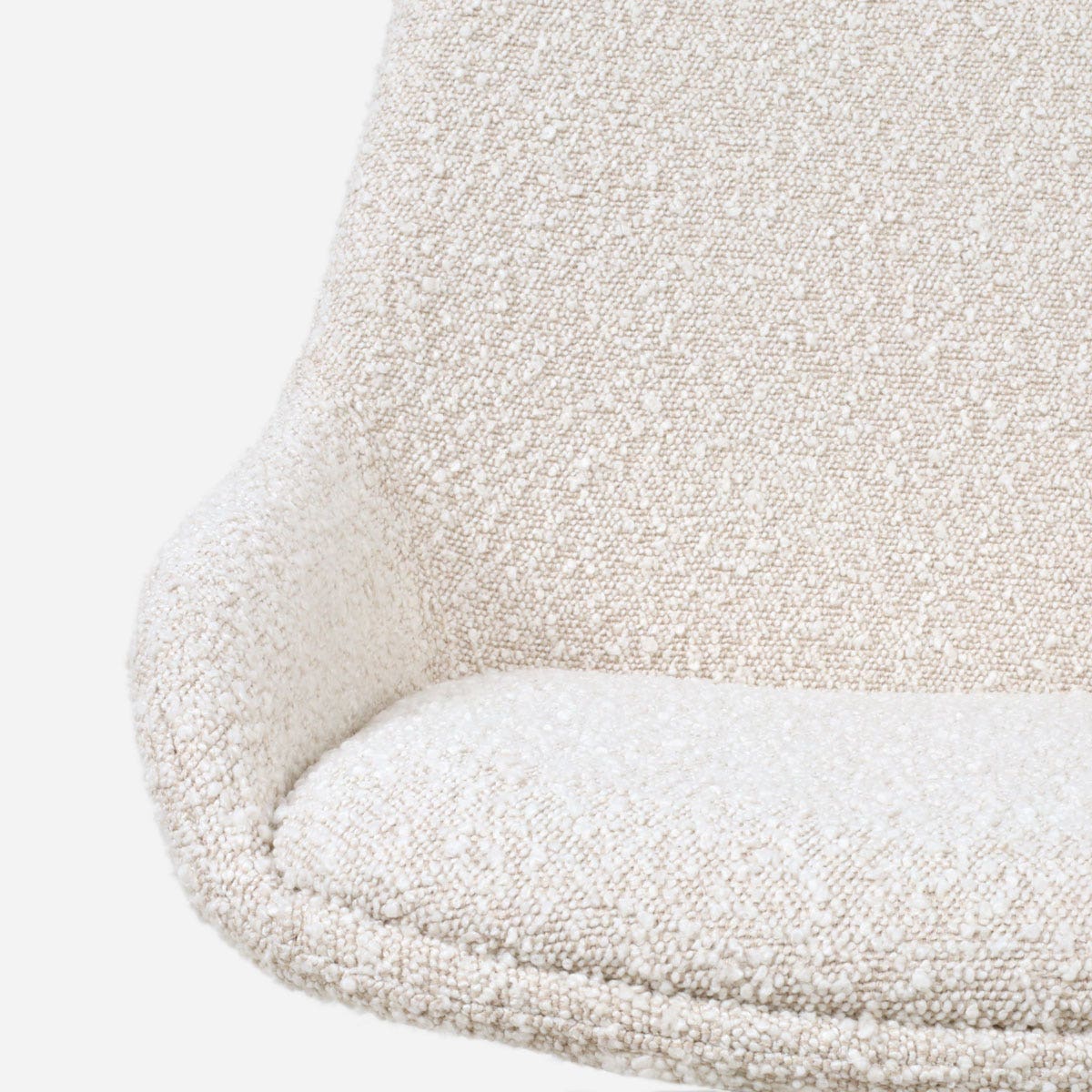 Ontdek de Nola-Isa draaibare eetkamerstoel in bouclé beige die stijl en functionaliteit combineert.