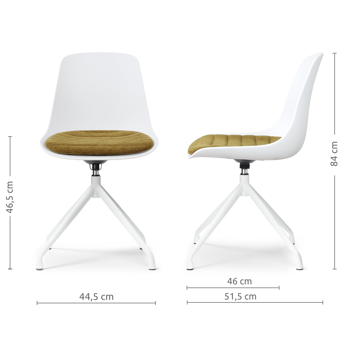 De eetkamerstoel heeft een modern draaibaar onderstel gemaakt van metaal. De zitting is gemaakt van door en door gekleurd kunststof, waardoor de stoel uiterst geschikt is voor inetnsief gebruik. De zitting draait 360 graden op het onderstel, zodat je de stoel niet ver naar achteren hoeft te schuiven om plaats te kunnen nemen. Ook aan het diner zorgt deze draaifunctie voor flexibiliteit. Om een uitstekend zitcomfort te bieden is de Nola-Liv eetkamerstoel niet alleen ontworpen met ergnomische vormen, het zitvlak van de stoel is voorzien van een vast zitkussen bekleed met zachte stof. Hierdoor zit je extra zacht en is urenlang natafelen of uitgebreid dineren op deze kunststof eetkamerstoel geen enkel probleem. Maak een keuze uit de zwarte of witte zitting en kies vervolgens uit één van de vijf beschikbare kleuren zitkussen om deze eetkamerstoel helemaal aan jouw eethoek aan te passen.