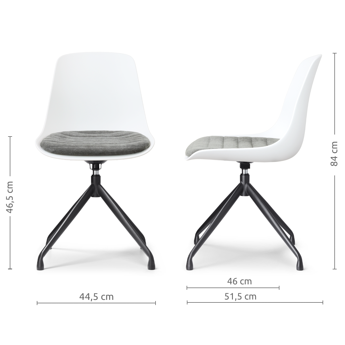 - Geen terugdraaimechanisme: de zitting kan 360 graden op het onderstel draaien