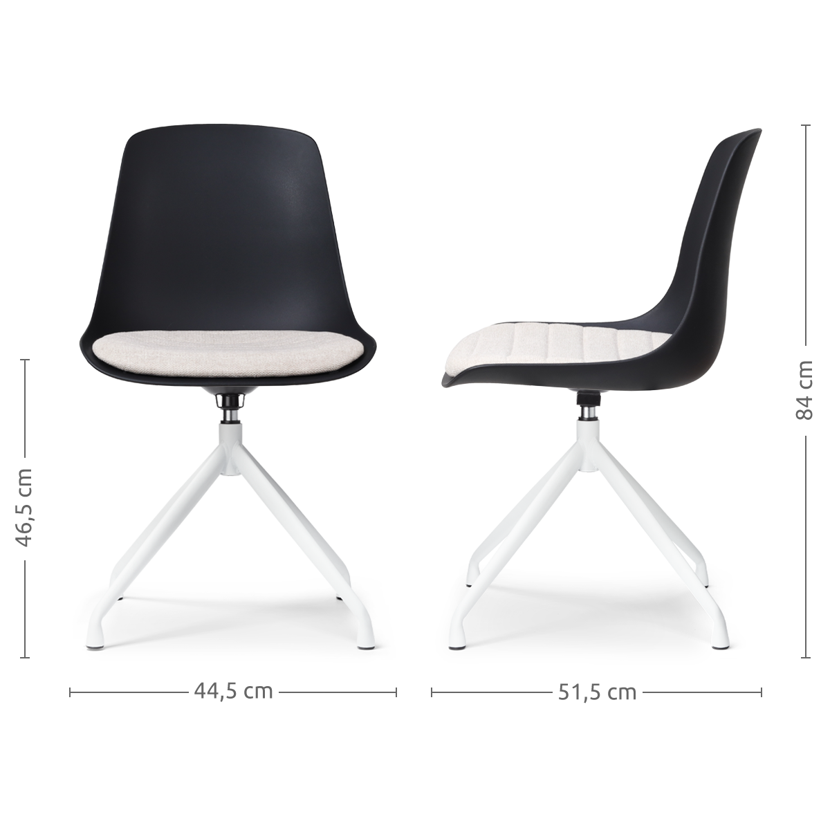 De eetkamerstoel heeft een modern draaibaar onderstel gemaakt van metaal. De zitting is gemaakt van door en door gekleurd kunststof, waardoor de stoel uiterst geschikt is voor inetnsief gebruik. De zitting draait 360 graden op het onderstel, zodat je de stoel niet ver naar achteren hoeft te schuiven om plaats te kunnen nemen. Ook aan het diner zorgt deze draaifunctie voor flexibiliteit. Om een uitstekend zitcomfort te bieden is de Nola-Liv eetkamerstoel niet alleen ontworpen met ergnomische vormen, het zitvlak van de stoel is voorzien van een vast zitkussen bekleed met zachte stof. Hierdoor zit je extra zacht en is urenlang natafelen of uitgebreid dineren op deze kunststof eetkamerstoel geen enkel probleem. Maak een keuze uit de zwarte of witte zitting en kies vervolgens uit één van de vijf beschikbare kleuren zitkussen om deze eetkamerstoel helemaal aan jouw eethoek aan te passen.