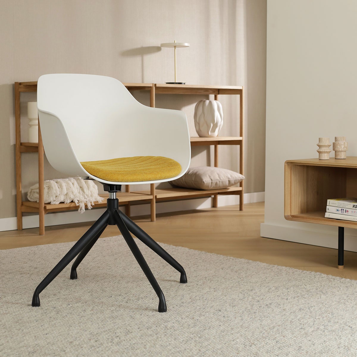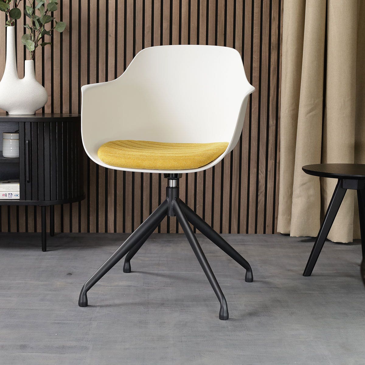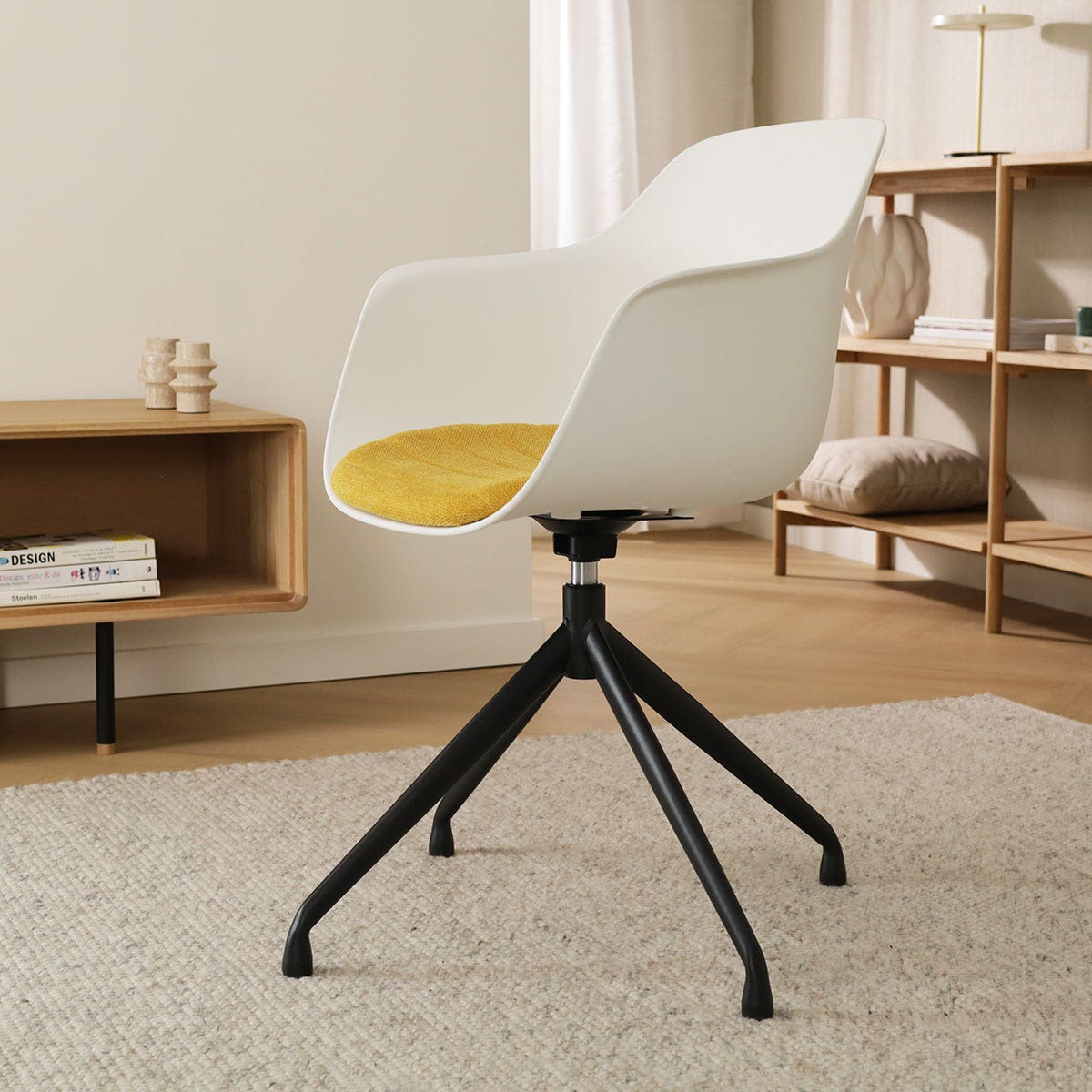 Nolon Nola-Liz Eetkamerstoel Wit - Okergeel - Draaibaar - Zwart