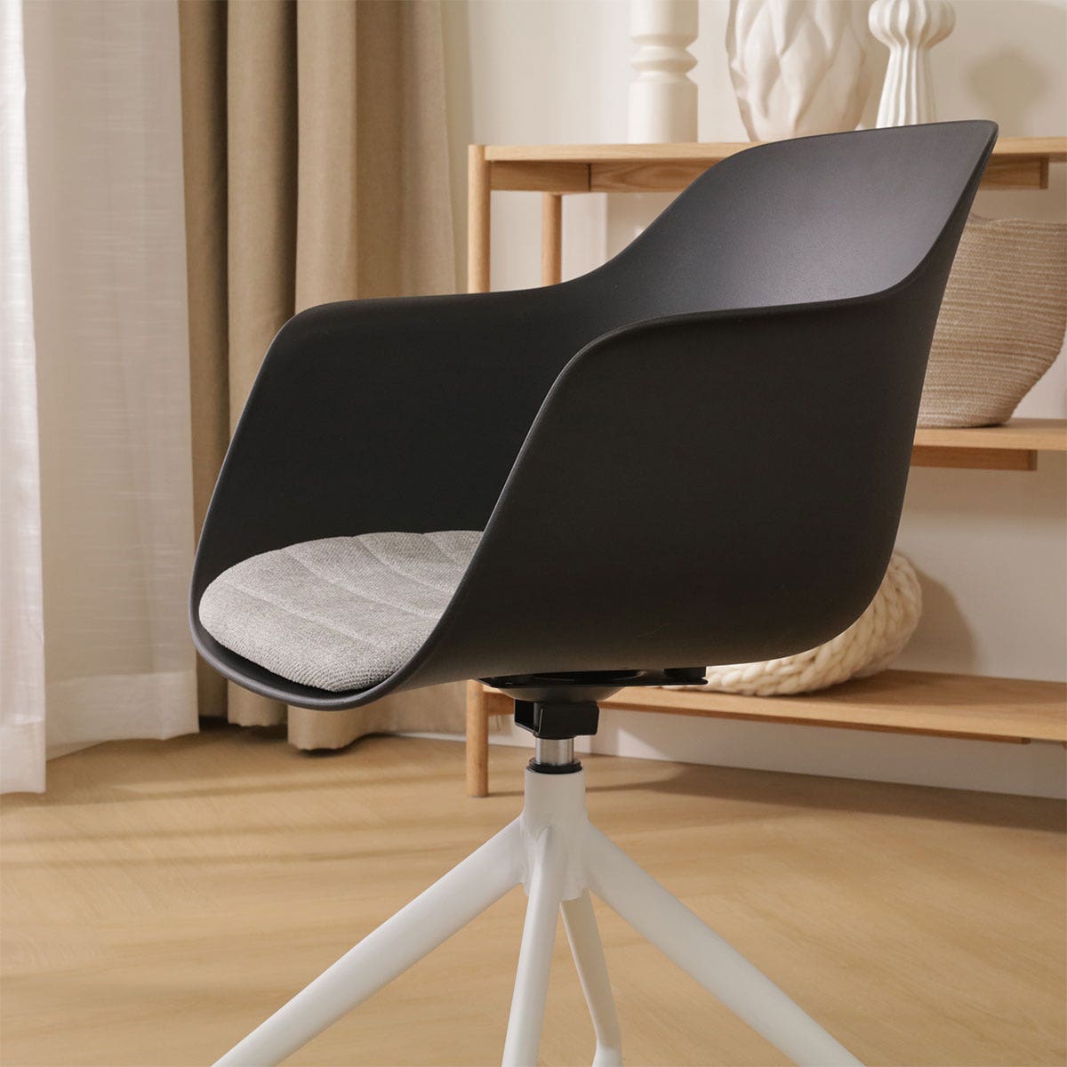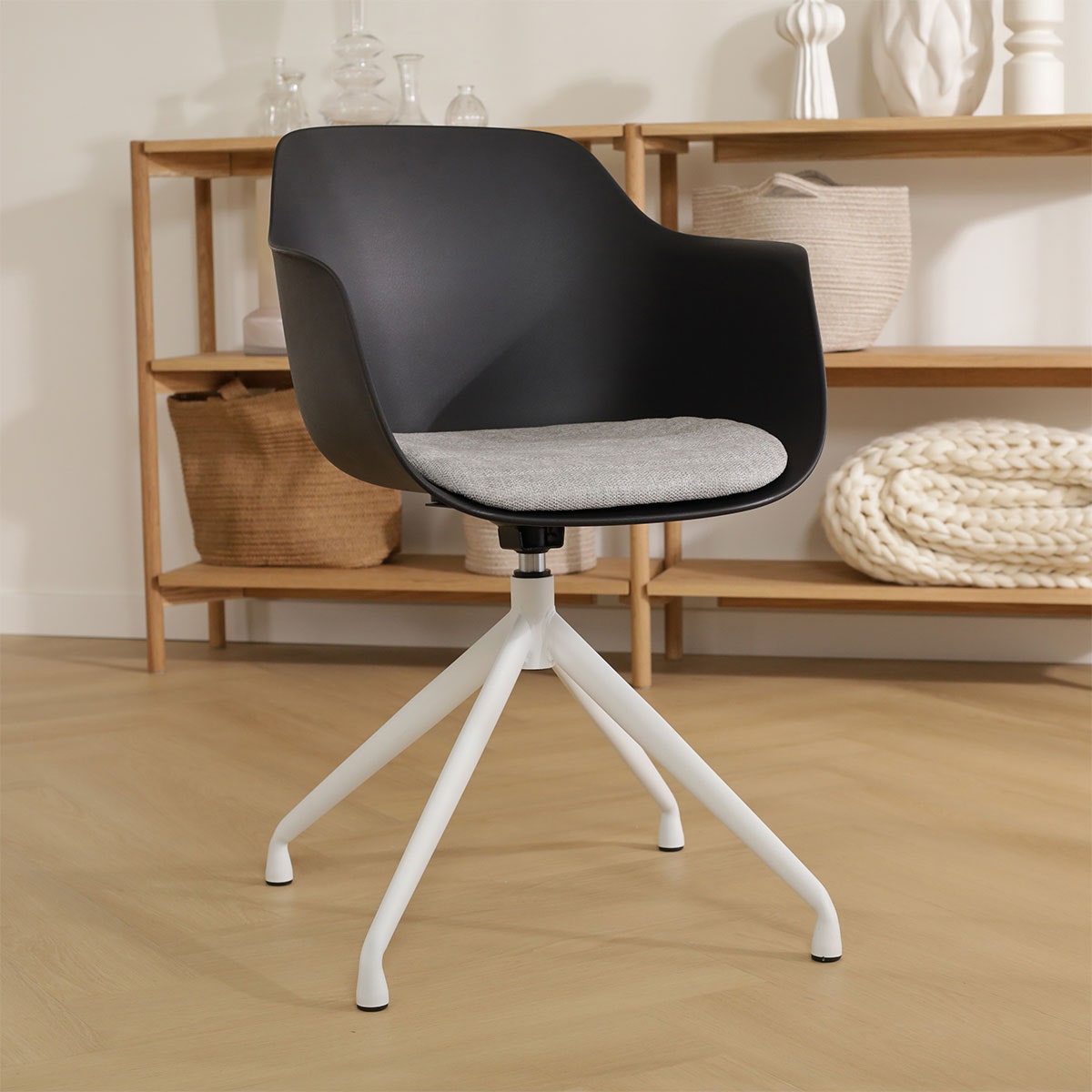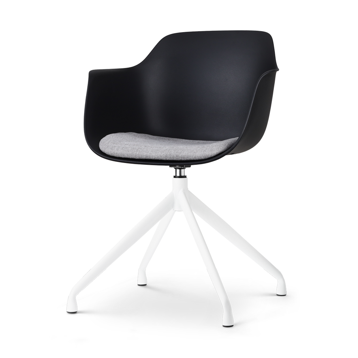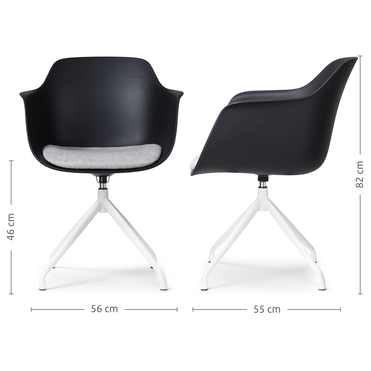 De Nola draaibare eetkamerstoel met een kunststof zitting met armleuningen is een mooie elegante stoel die als blikvanger dient rondom je eettafel.