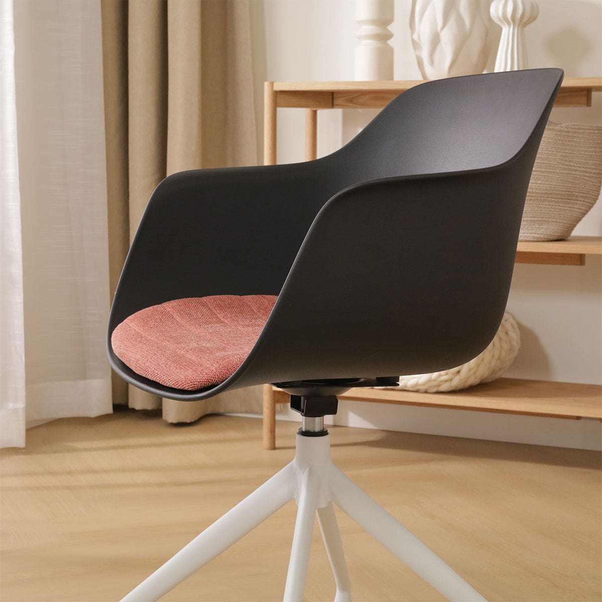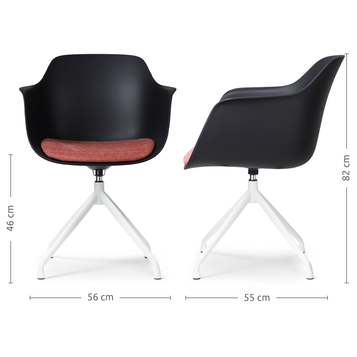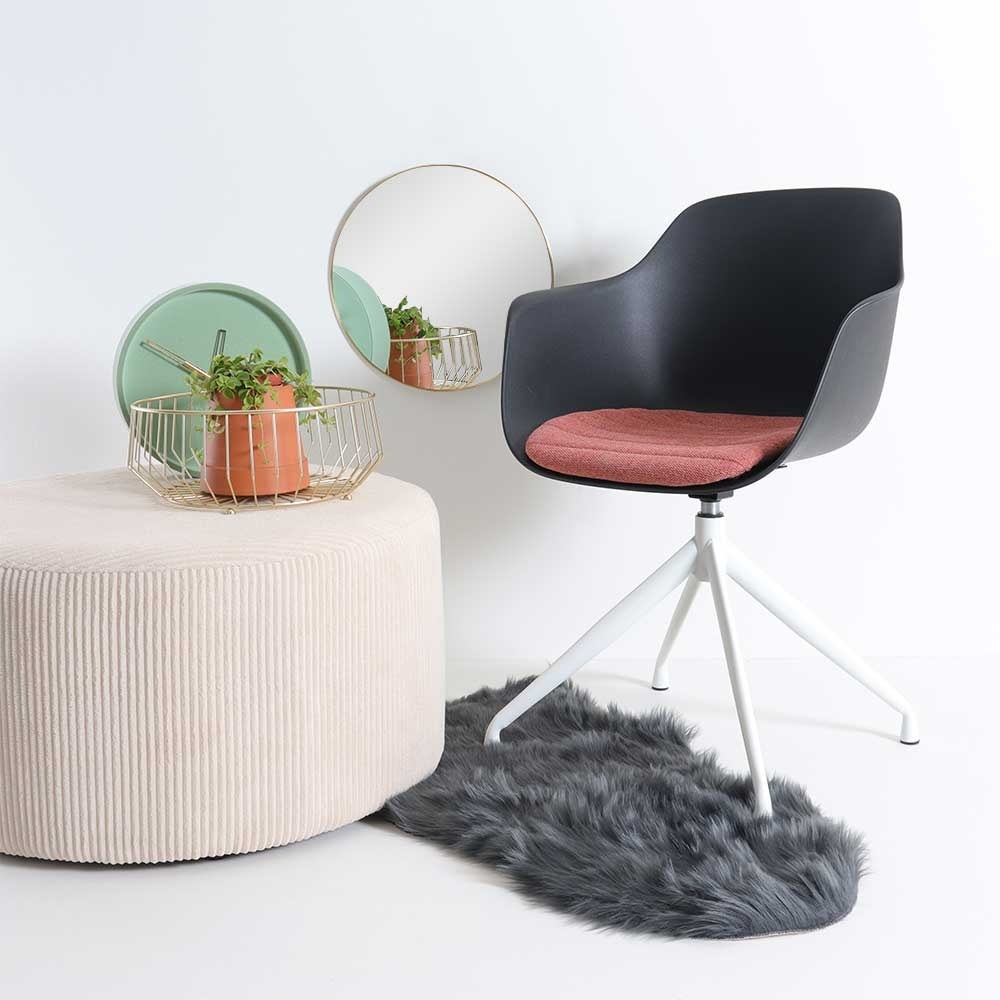 De Nola draaibare eetkamerstoel met een kunststof zitting met armleuningen is een mooie elegante stoel die als blikvanger dient rondom je eettafel.