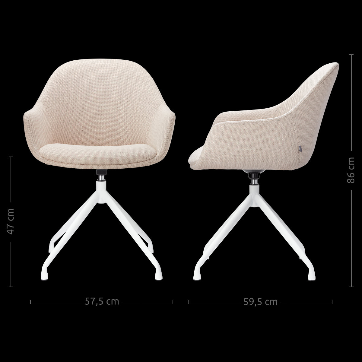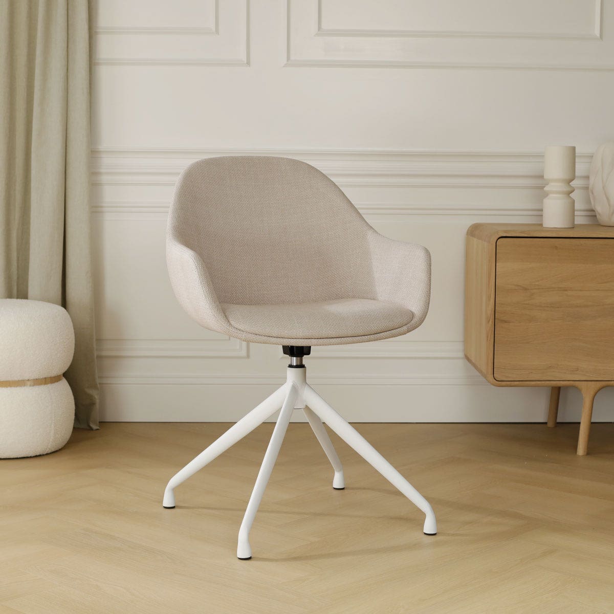 Stijlvol en praktisch: Nola-Mae draaibare eetkamerstoel beige met witte poten.