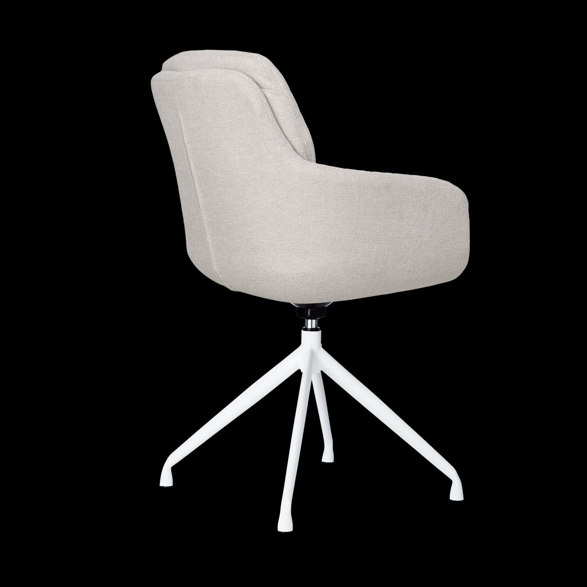 Deze eetkamerstoel heeft een metalen frame met een draaibare poot. Het onderstel van de draaibare eetkamerstoel heeft geen terugdraaifunctie, waardoor de zitting 360 graden op het onderstel kan draaien. Dit biedt veel flexibiliteit aan tafel en zorgt ervoor dat je de stoel niet helemaal naar achteren hoeft te schuiven. De comfortabele zitting is volledig bekleed met zachte stof en is verkrijgbaar in beige en grijs. De hoge rugleuning zorgt voor veel ondersteuning, net als het vaste zitkussen en de armleuningen. Urenlang natafelen is met de Nola-Mia eetkamerstoel dus geen probleem.
