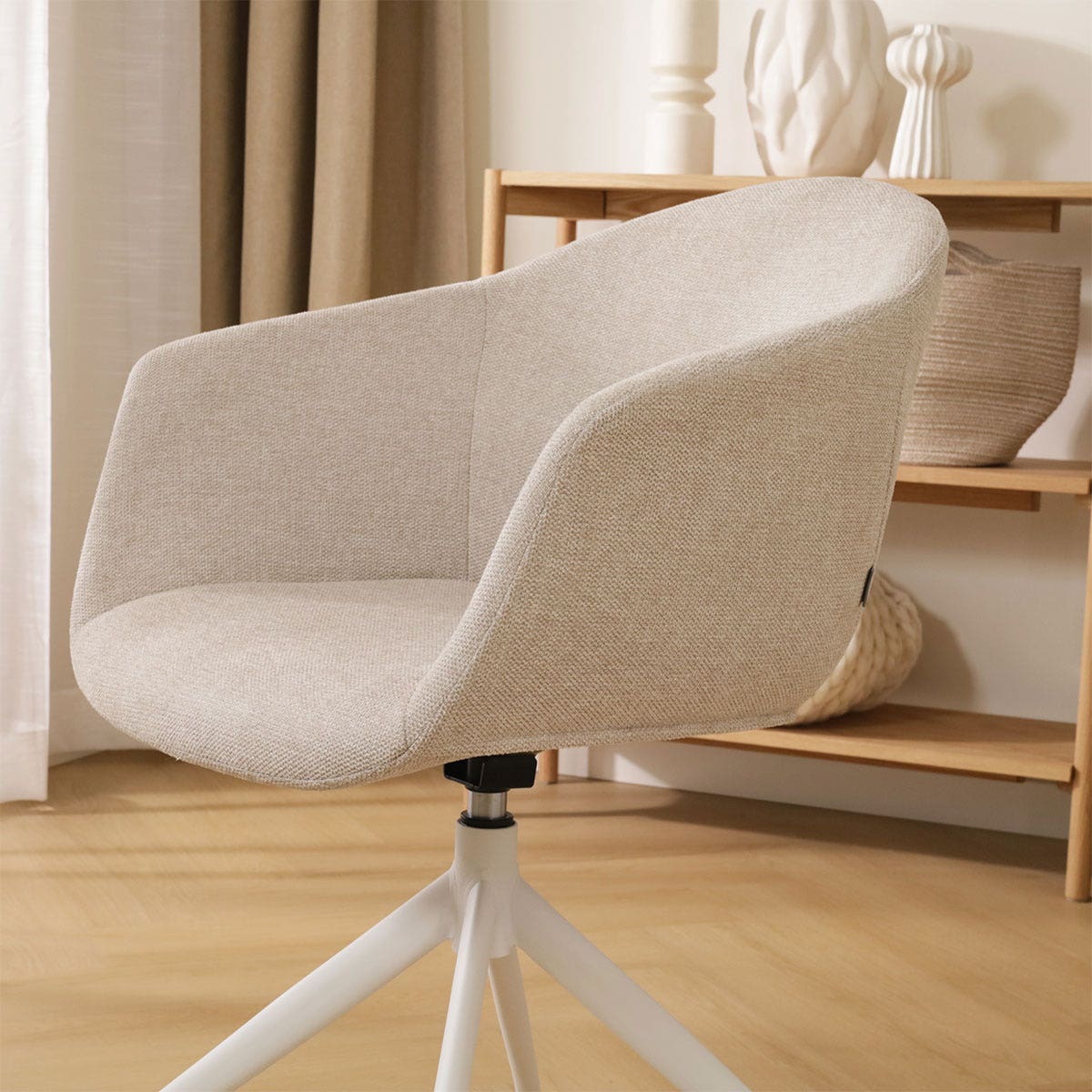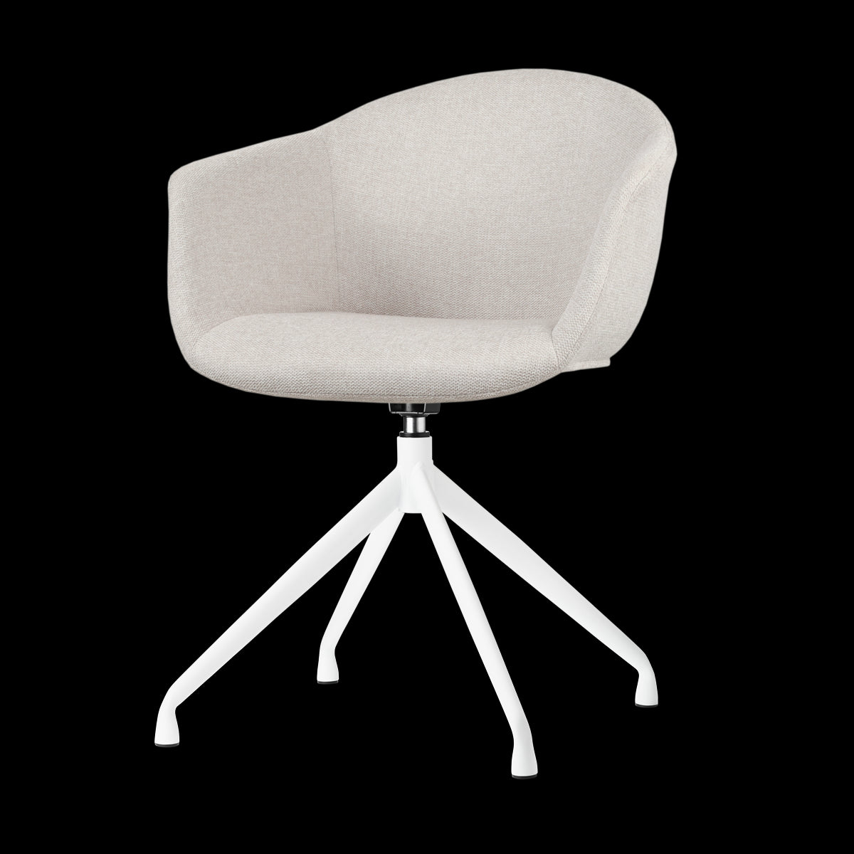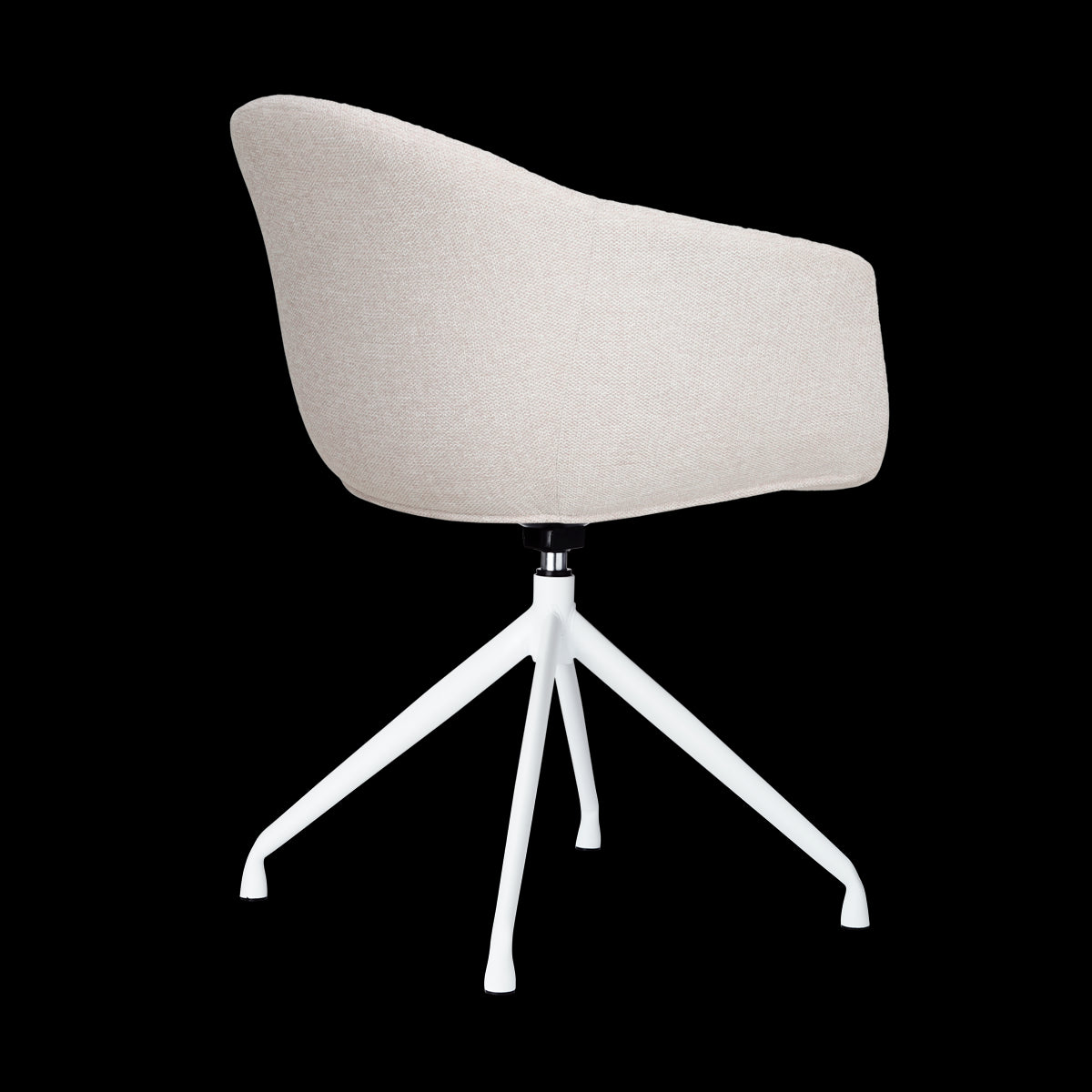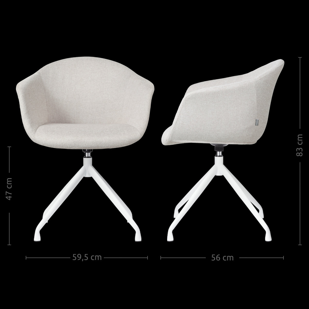 De stoel is ontworpen met armleuningen voor extra zitcomfort en de stoffen bekleding zorgt ervoor dat je lekker zacht zit. Met zes verschillende kleuren bekleding is er voor iedere woonstijl een geschikt exemplaar te vinden. Het moderne metalen onderstel staat op vier slanke poten en heeft een draaifunctie, zodat je gemakkelijk op en af kan stappen. De schuin aflopende armleuningen bieden volop ondersteuning en zorgen er in combinatie met de passieve zithouding voor dat je ontspannen aan tafel zit. Deze draaibare eetkamerstoel van Nolon is dus niet alleen erg leuk om te zien, maar zit ook nog eens heel erg comfortabel.