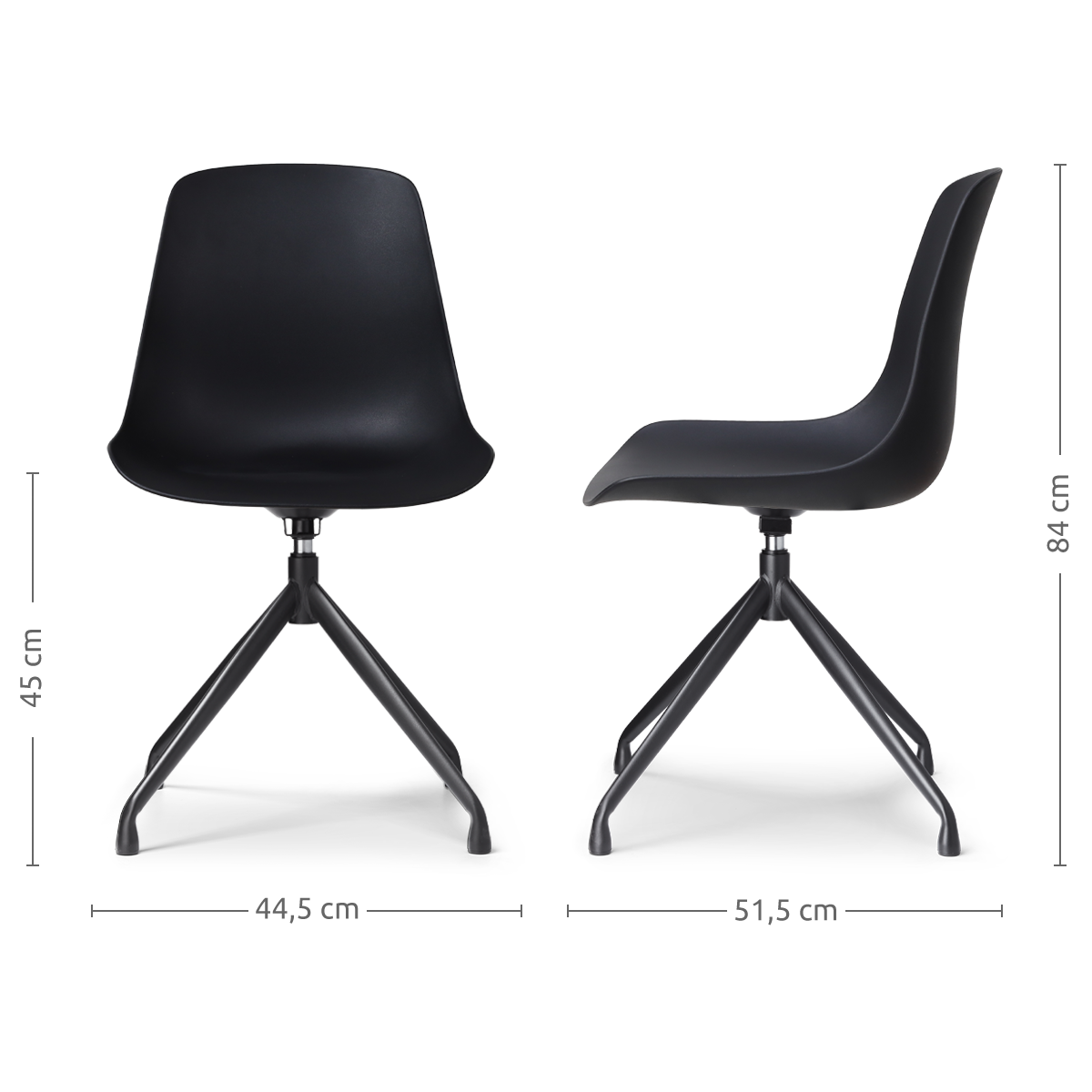 Deze eetkamerstoel combineert namelijk een praktische kunststof zitting met een tijdloos metalen onderstel. Het onderstel staat op vier ranke poten en is bovendien draaibaar. Dankzij de afwezigheid van een terugdraaifunctie kan de zitting 360 graden op het onderstel draaien. Dit zorgt voor veel bewegingsvrijheid aan tafel en voorkomt dat je de stoel helemaal naar achteren hoeft te schuiven. Dit maakt van deze draaibare eetkamerstoel de perfecte keuze voor in een kleine ruimte. De zitting is gemaakt van door en door gekleurd kunststof, wat betekent dat krassen en beschadigingen niet opvallen. Dankzij de ergonomische vorm zit je comfortabel aan het diner, maar met het Fem zitkussen van Nolon kan je het zitcomfort nog meer verhogen.