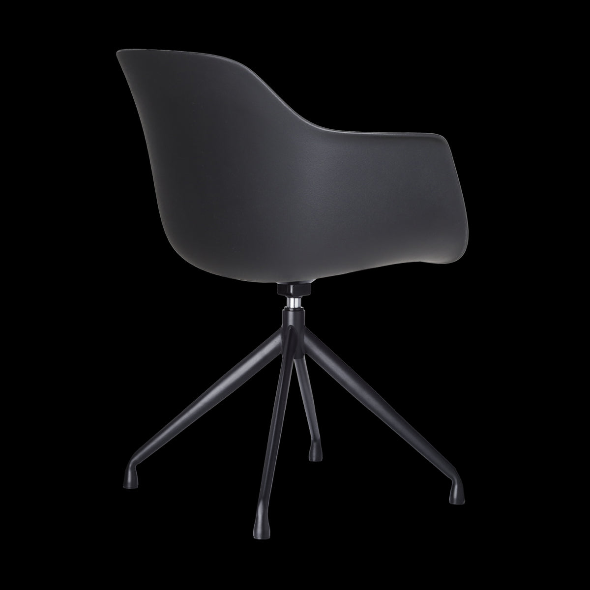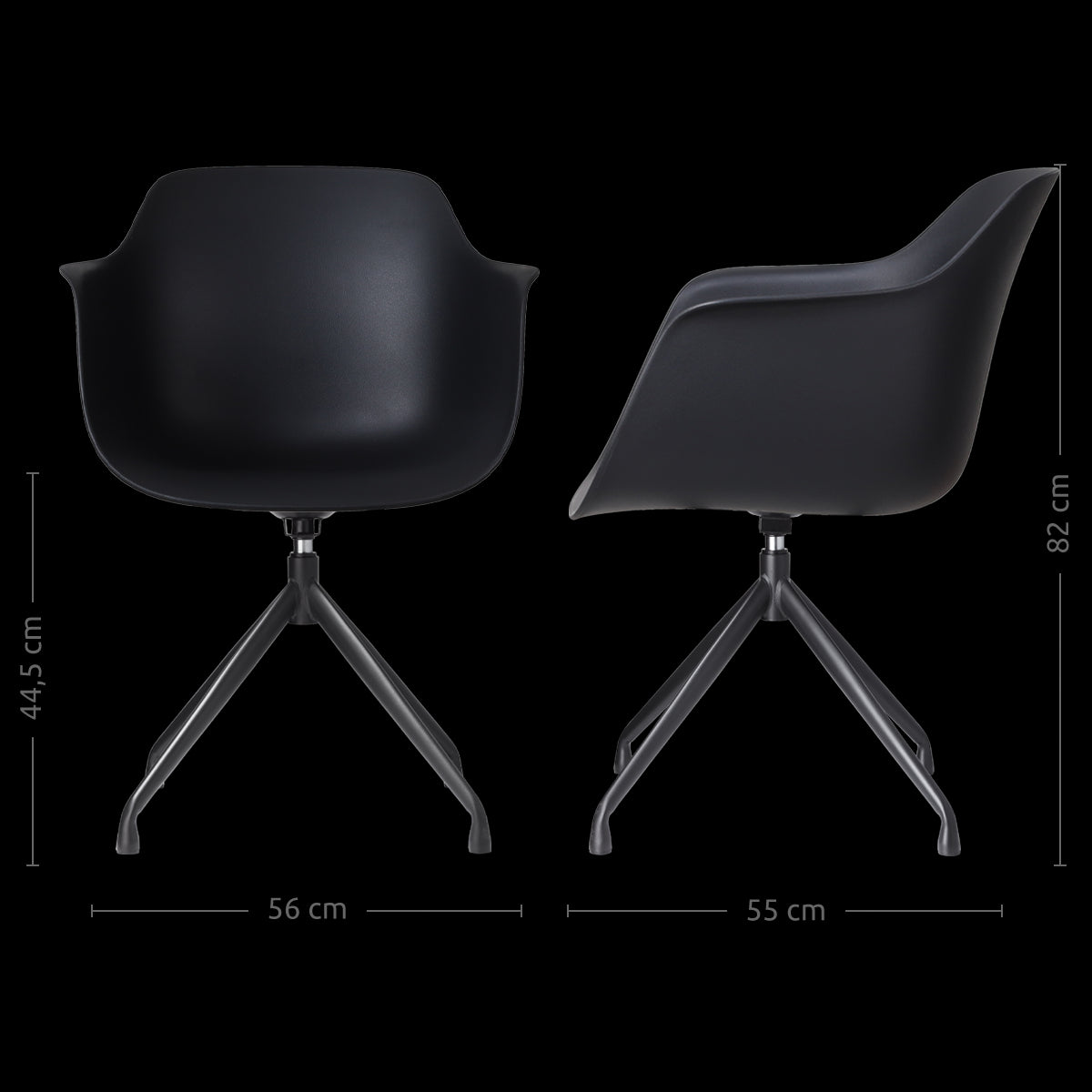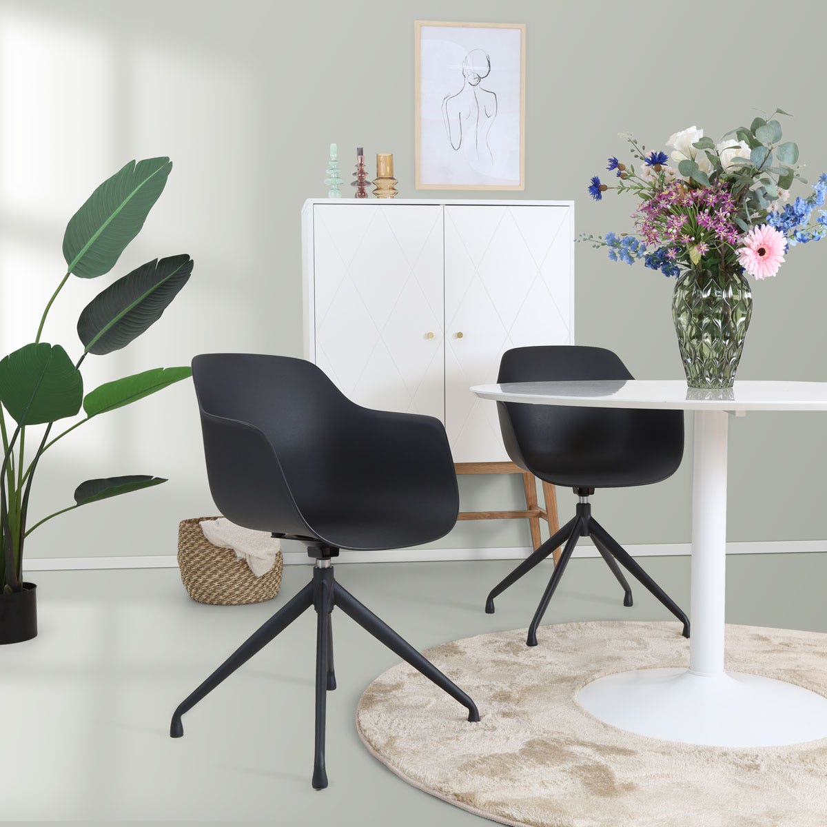 Deze stoel is niet zomaar een standaard eetkamerstoel: hij is namelijk volledig draaibaar. Het moderne onderstel is gemaakt van metaal en is voorzien van een draaifunctie. De stoel heeft geen terugdraaimechanisme, waardoor de zitting 360 graden op het onderstel kan draaien. Hierdoor is het niet nodig om de stoel helemaal naar achteren te schuiven als je aan tafel wil gaan zitting, wat ideaal is voor in een kleine eethoek. De kunststof zitting is ontworpen met een ergonomische vorm en armleuningen om extra zitcomfort te bieden. Het kunststof materiaal is gemakkelijk schoon te maken en is bovendien door en door gekleurd, waardoor krassen en beschadigingen niet opvallen. Wil je toch iets zachter zitten? Combineer deze kunststof eetkamerstoel dan met het Fem zitkussen van Nolon, wat een perfecte match is.