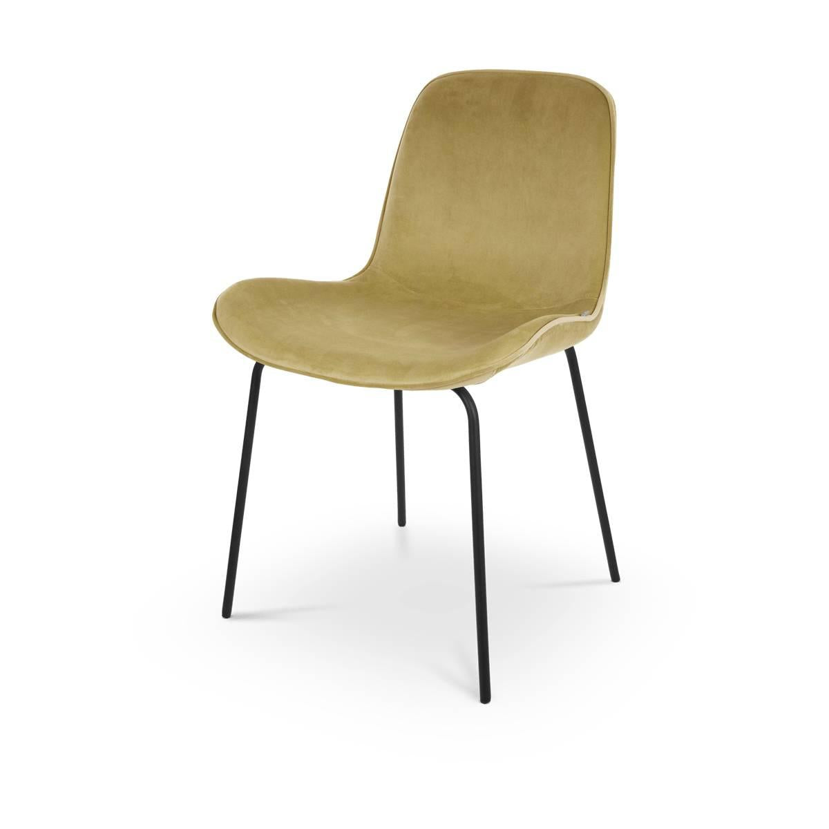De strakke lijnen van het onderstel en de subtiele rondingen van de gestoffeerde zitting geven deze eetkamerstoel een tijdloze en stijlvolle uitstraling. Deze eetkamerstoel heeft een tijdloos design dat gemakkelijk te combineren is met iedere woonstijl. Het stabiele onderstel van de stoel is gemaakt van metaal en heeft een elegante en minimalistische uitstraling dankzij de ranke poten. De gestoffeerde zitting met gevleugeld zitvlak voegt warmte toe aan de eethoek en zorgt ervoor dat je erg comfortabel zit. Het houten binnenwerk biedt veel ondersteuning aan de rug en biedt een actieve zithouding. De Nora-Fé eetkamerstoel heeft geen armleuningen en kan daardoor zorgeloos aan iedere eettafel en op elke plek worden aangeschoven. Liever een andere bekleding? De Nora-Fé stoel is naast velvet ook in acht andere kleuren en materialen verkrijgbaar.