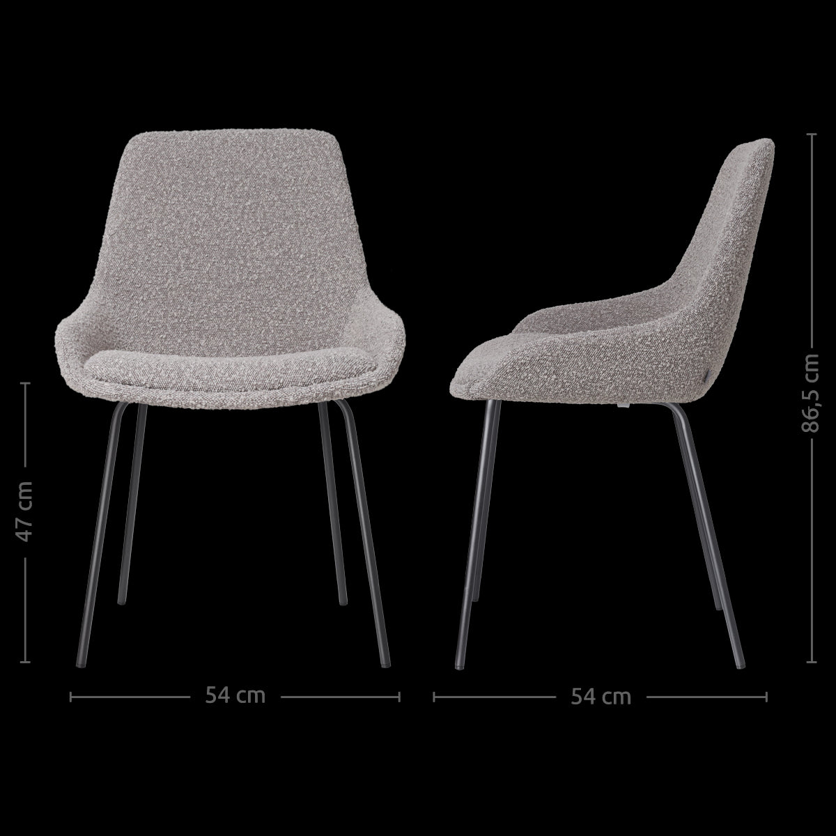 De Nora-Isa eetkamerstoel bouclé taupe - zwart onderstel is onderdeel van een mix en match collectie. Dit betekent dat zowel het onderstel als de zitting van deze stoel in diverse andere combinaties verkrijgbaar zijn. Zo is de stoel met een wit onderstel en een zwart onderstel beschikbaar in de kleuren bouclé taupe, beige, warm grijs, bruin, beige gemêleerd en in het groen. Met deze varianten kun je eenvoudig de ideale stoelcombinatie kiezen die perfect aansluit bij jouw interieur en persoonlijke stijl.| Afmetingen | |