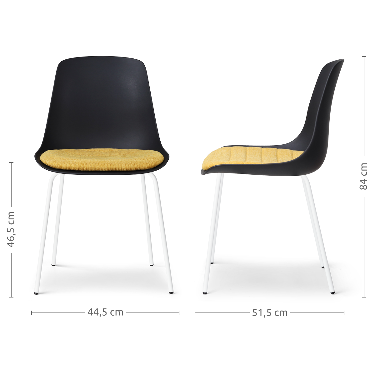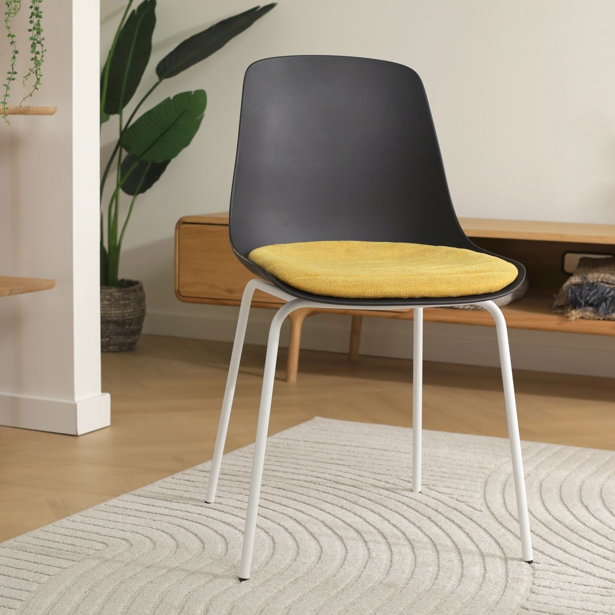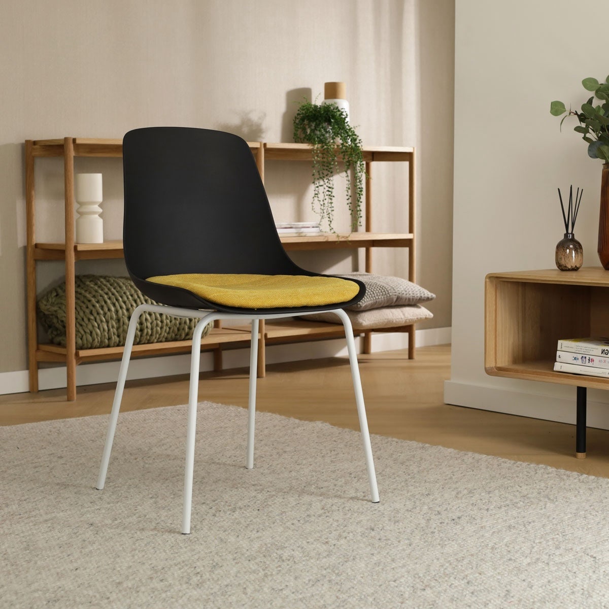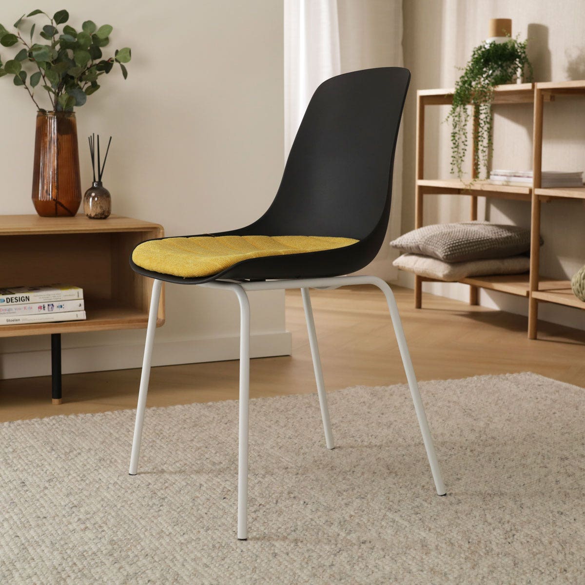 Deze eetkamerstoel combineert verschillende materialen op stijlvolle wijze en geeft de eethoek daarmee een echte upgrade. De duurzame kunststof zitting is niet alleen gemakkelijk schoon te maken, maar biedt ook een stevige en comfortabele basis. Het metalen onderstel met ranke pootjes zorgt ervoor dat de eetkamerstoel stabiel op de grond staat en draagt bij aan het tijdloze karakter van dit ontwerp. Naast de ergonomisch ontworpen kunststof zitting draagt ook het vaste zitkussen bij aan het zitcomfort van deze stoel. Het kussen is bekleed met hoogwaardige stof en is in vijf verschillende kleuren verkrijgbaar. Met een keuze tussen zwart en wit voor de kunststof kuip en daarnaast nog de twee kleuren waarin het Nora onderstel verkrijgbaar is, is de Nora-Liv eetkamerstoel in ieder interieur te combineren.