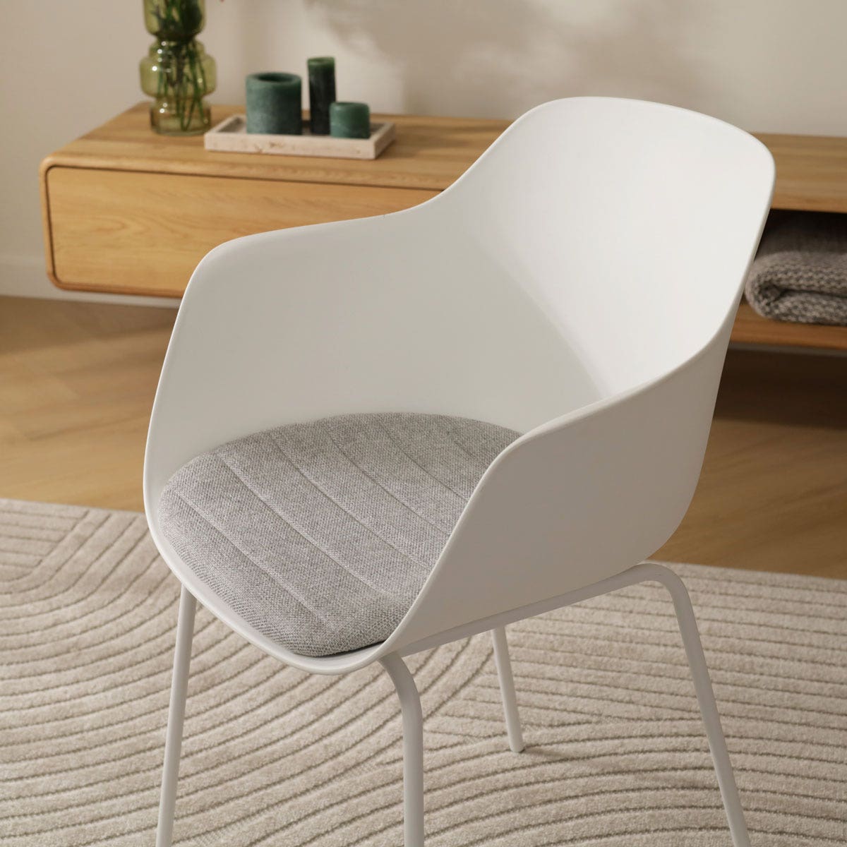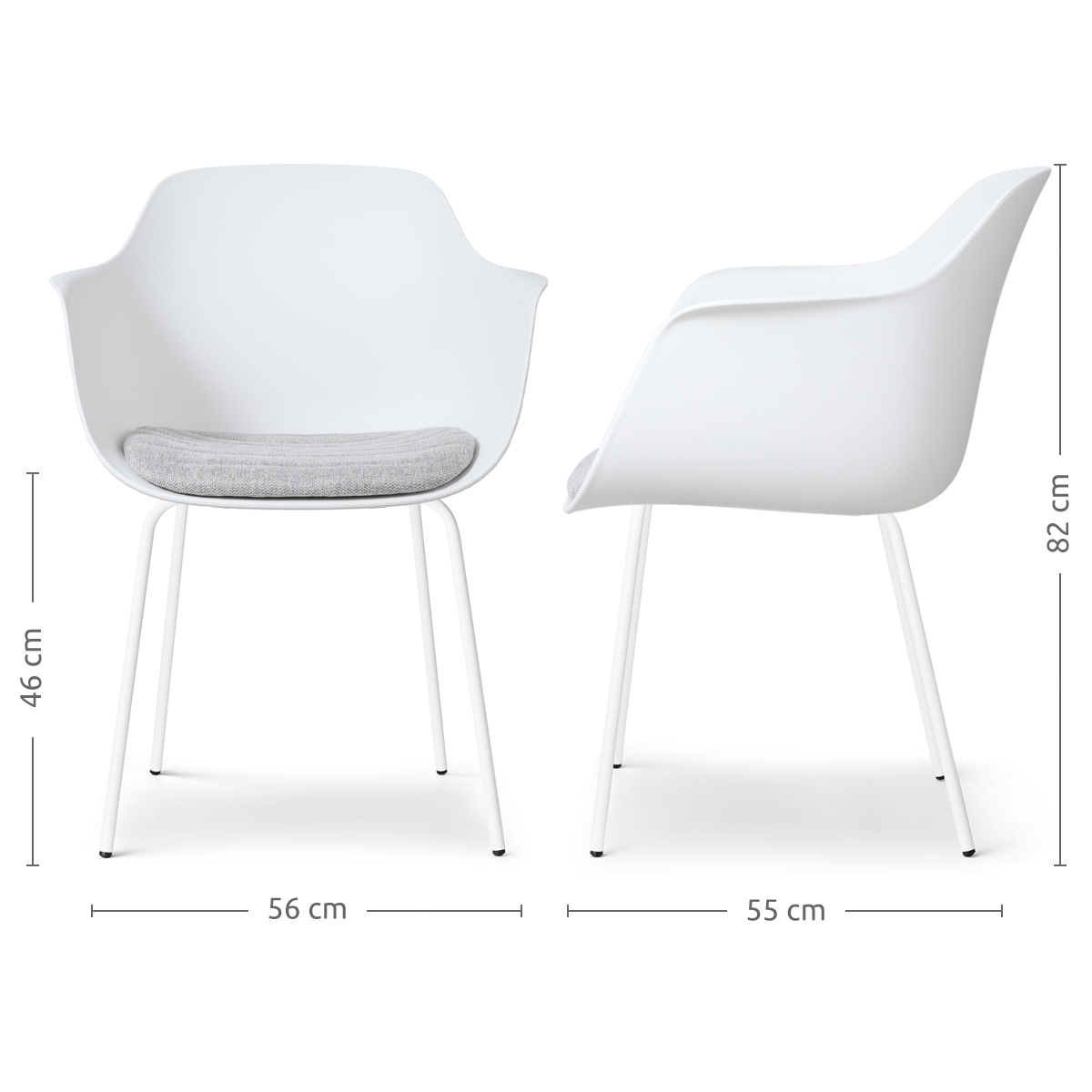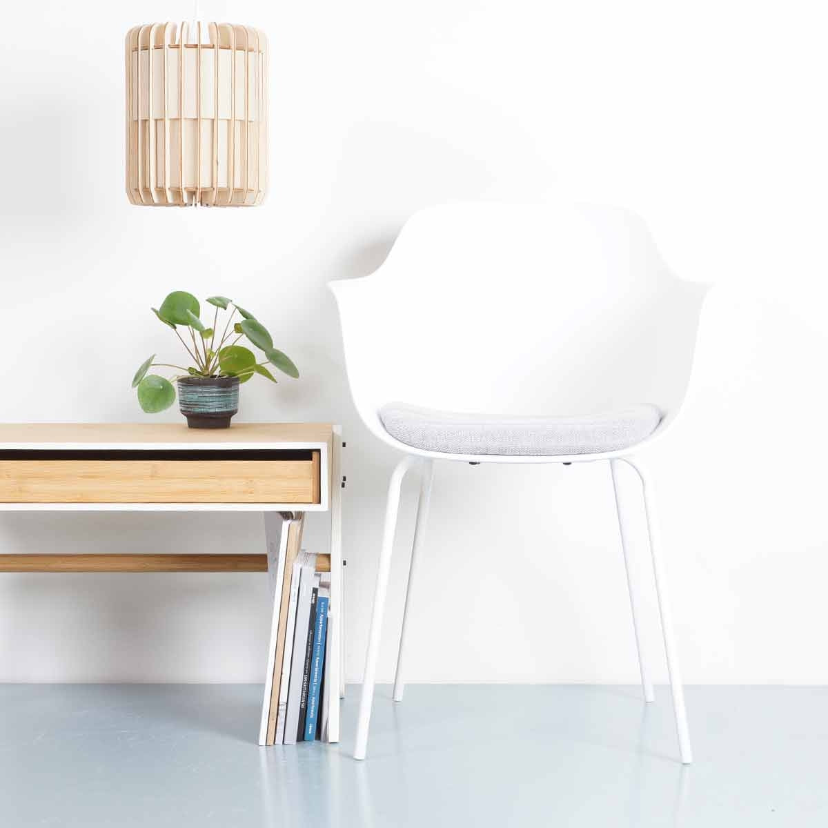 De zitting van deze eetkamerstoel is verkrijgbaar in het kunststof en je kunt kiezen uit verschillende kleuren vaste zitkussens in de stoel. Bovendien heeft de zitting armleuningen, voor nog meer comfort. Kortom een ideale stoel voor bij jou thuis!
