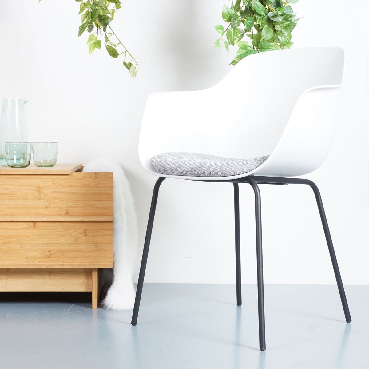 De zitting van deze eetkamerstoel is verkrijgbaar in het kunststof en je kunt kiezen uit verschillende kleuren vaste zitkussens in de stoel. Het onderstel is gemaakt van metaal en in verkrijgbaar in meerdere uitvoeringen. De stoel heeft 4 rechte pootjes, die perfect zou staan in een Scandinavisch interieur. Kortom een ideale stoel voor bij jou thuis!