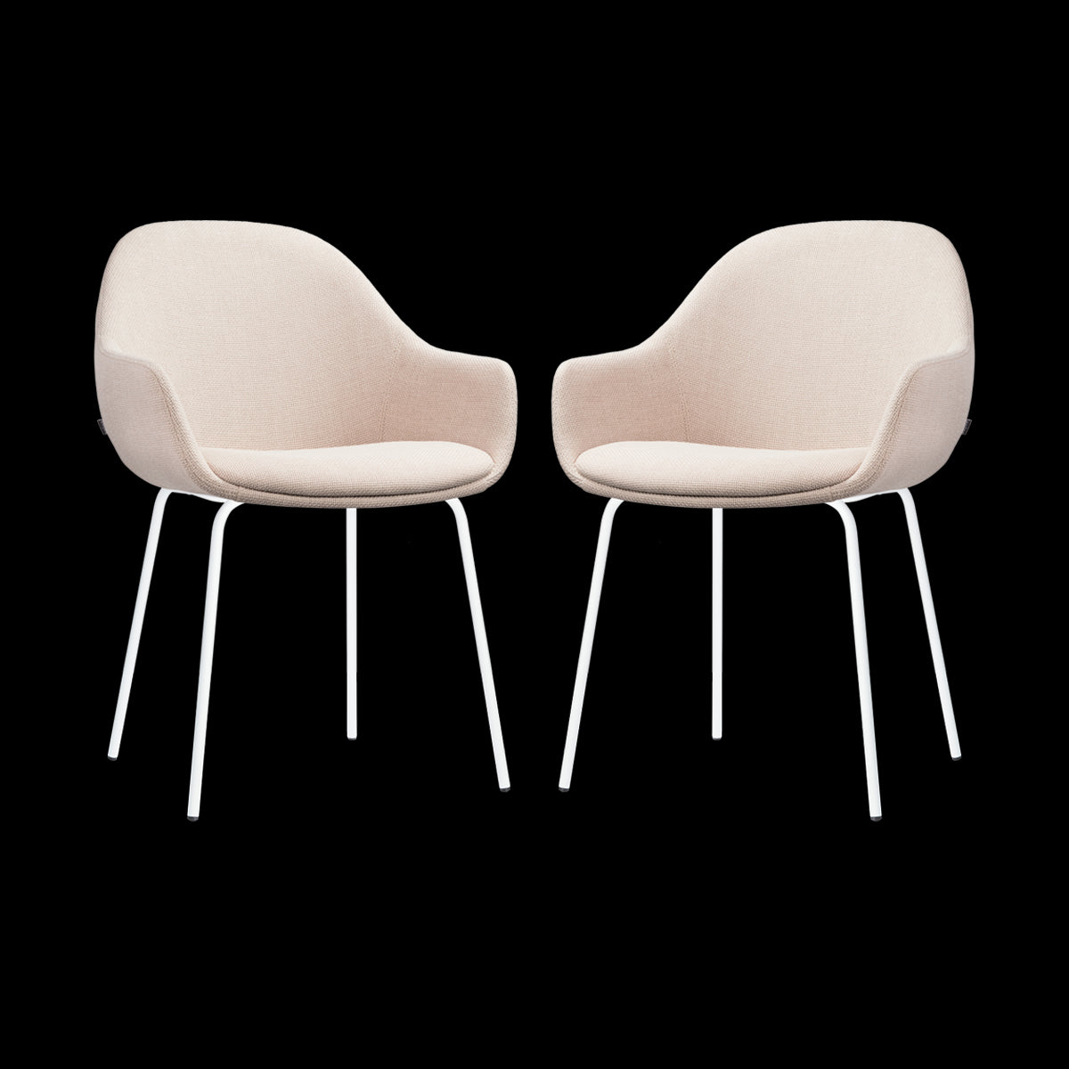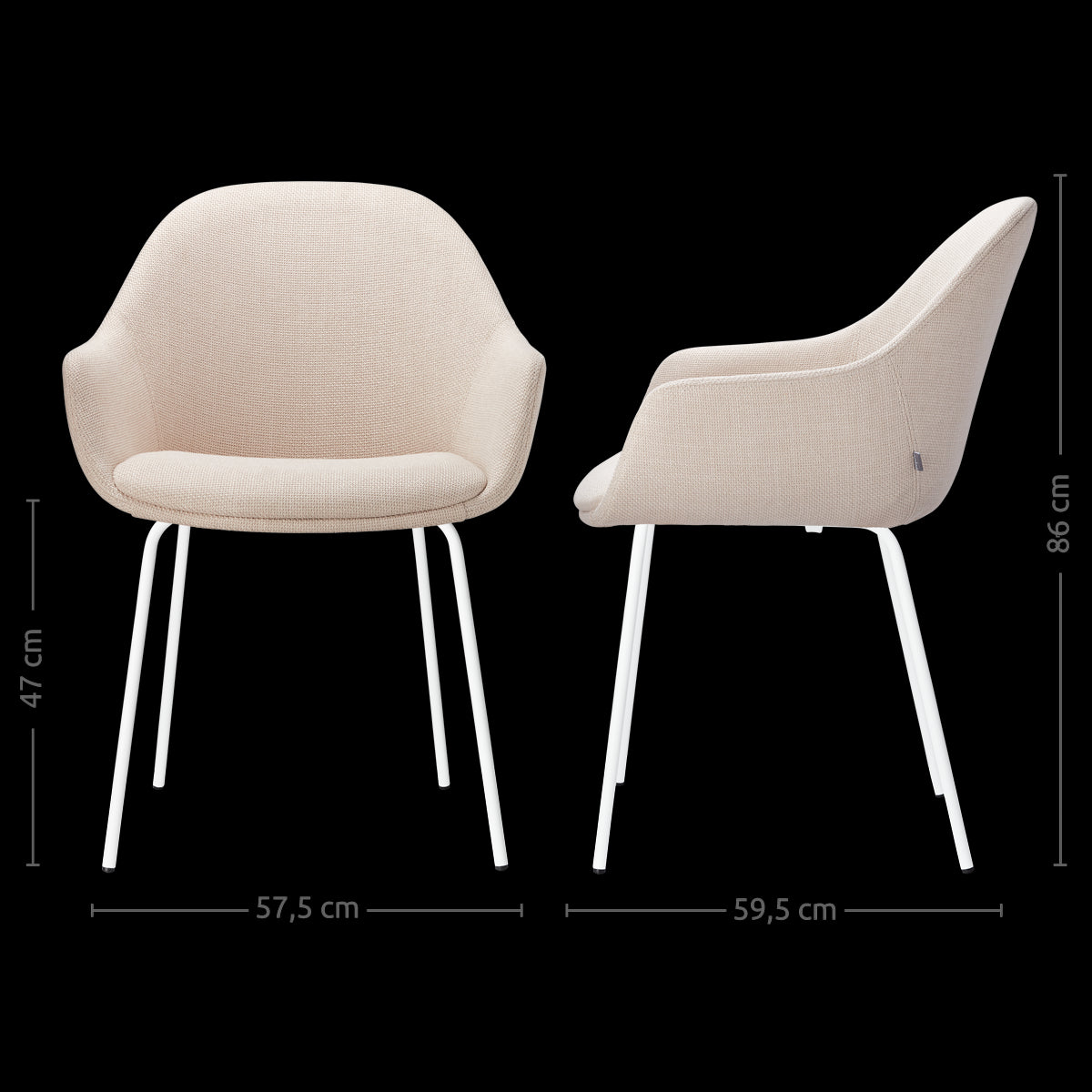 Deze eetkamerstoel is de ideale combinatie van een modern metalen onderstel met een uitnodigende stoffen zitting. Het ranke onderstel met de vier metalen poten zorgt voor een stabiele zit en geeft de eetkamerstoel de nodige elegantie. De kuipzitting is voorzien van armleuningen zodat urenlang natafelen een gemak is. De zitting van de Nora-Mae eetkamerstoel is verkrijgbaar in twee kleuren en twee verschillende materialen. Ga jij voor een luxe beige bekleding of durf je het aan met een bouclé eetkamerstoel? Welke variant je ook kiest, de Nora-Mae eetkamerstoel maakt van jouw eetkamer een warme en uitnodigende plek om samen te komen met vrienden en familie.