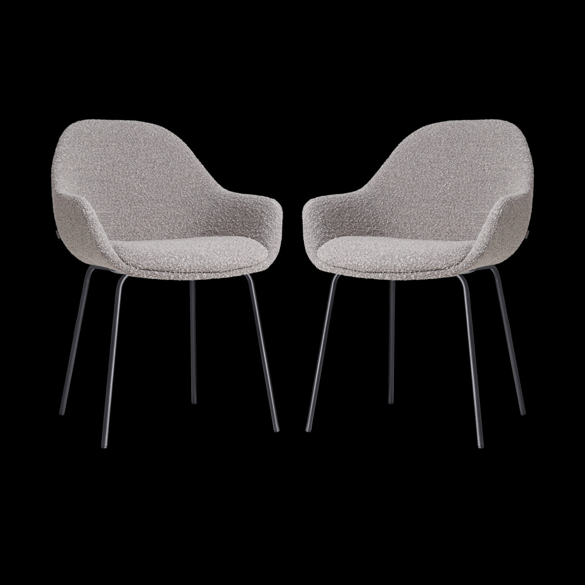 Deze eetkamerstoel is de ideale combinatie van een modern metalen onderstel met een uitnodigende stoffen zitting. Het ranke onderstel met de vier metalen poten zorgt voor een stabiele zit en geeft de eetkamerstoel de nodige elegantie. De kuipzitting is voorzien van armleuningen zodat urenlang natafelen een gemak is. De zitting van de Nora-Mae eetkamerstoel is verkrijgbaar in twee kleuren en twee verschillende materialen. Ga jij voor een luxe beige bekleding of durf je het aan met een bouclé eetkamerstoel? Welke variant je ook kiest, de Nora-Mae eetkamerstoel maakt van jouw eetkamer een warme en uitnodigende plek om samen te komen met vrienden en familie.