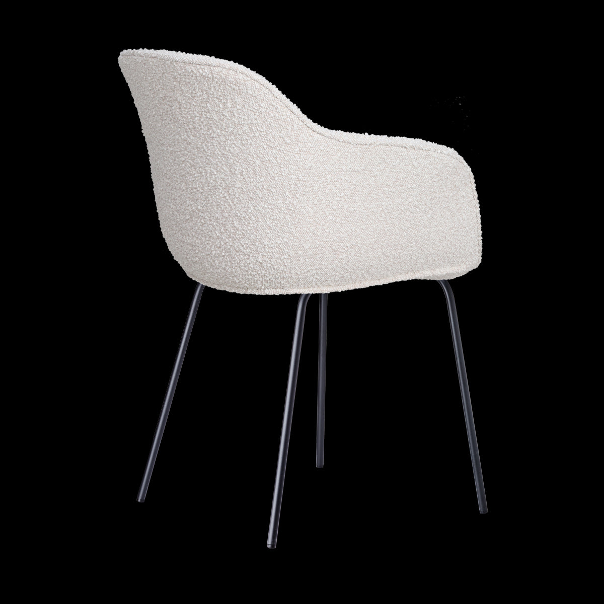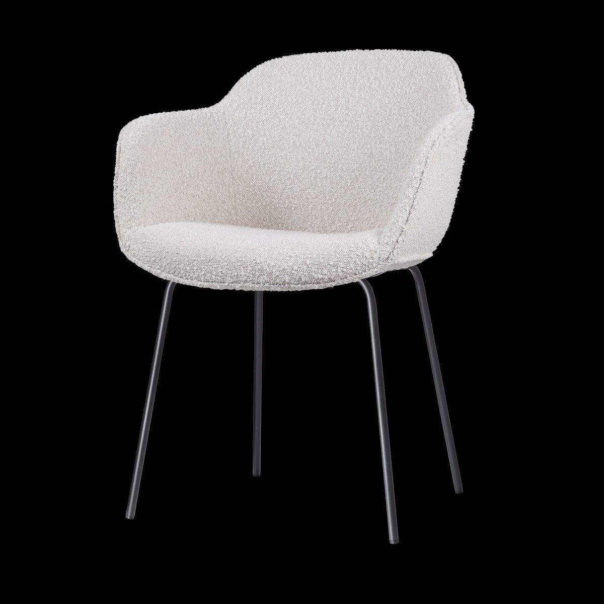 Het tijdloze en sfeervolle ontwerp van deze stoel tilt iedere eetruimte moeiteloos naar een hoger niveau. De kuipzitting met armleuningen biedt niet alleen een stijlvolle uitstraling, maar garandeert ook ultiem comfort tijdens elke maaltijd. De bouclé bekleding zorgt voor een zachte zitervaring en is daarnaast ook slijtvast, waardoor deze stoel perfect past in de eethoek die vaak wordt gebruikt. De subtiele rondingen en zachte lijnen van de zitting dragen bij aan een warm en uitnodigend karakter. Dankzij het slanke en minimalistische metalen onderstel past deze eetkamerstoel bovendien bij iedere woonstijl, of je nu kiest voor een Scandinavisch of industrieel interieur.