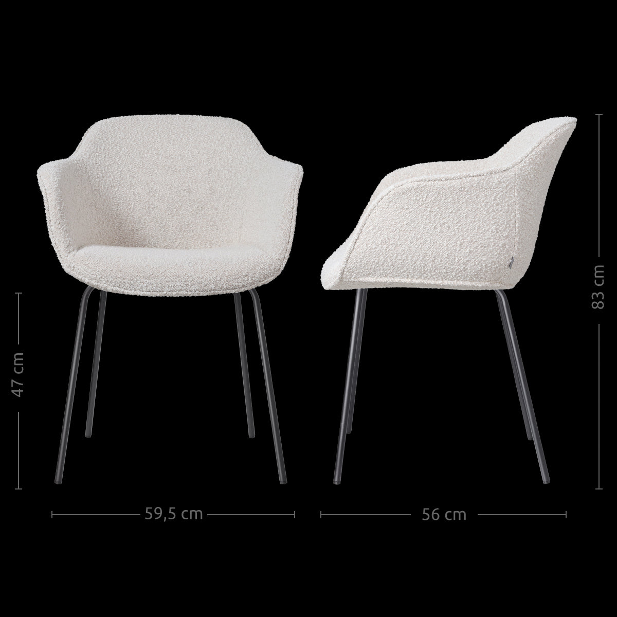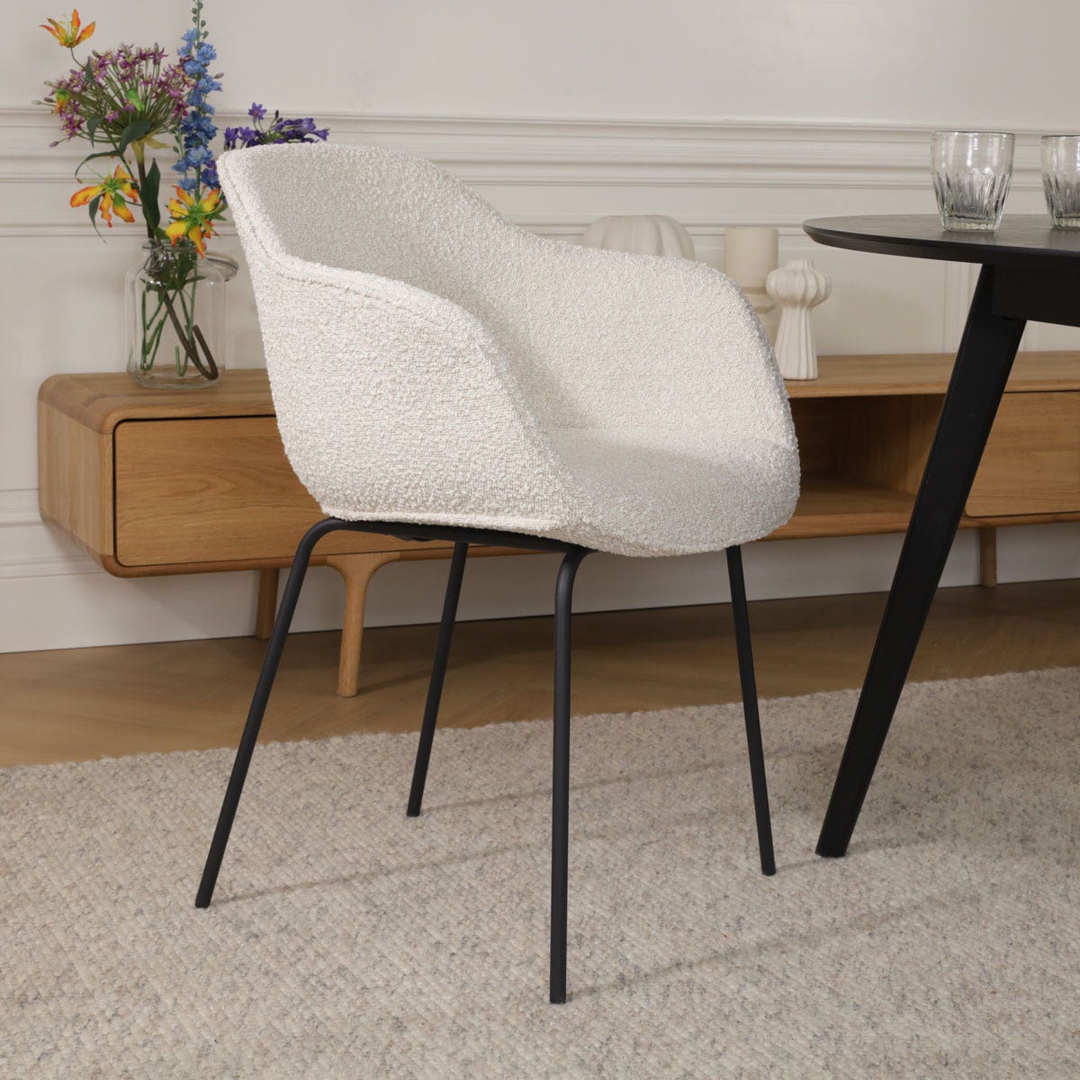 Creëer een chique sfeer in de eethoek met de bouclé eetkamerstoel Nora-Mare van Nolon.