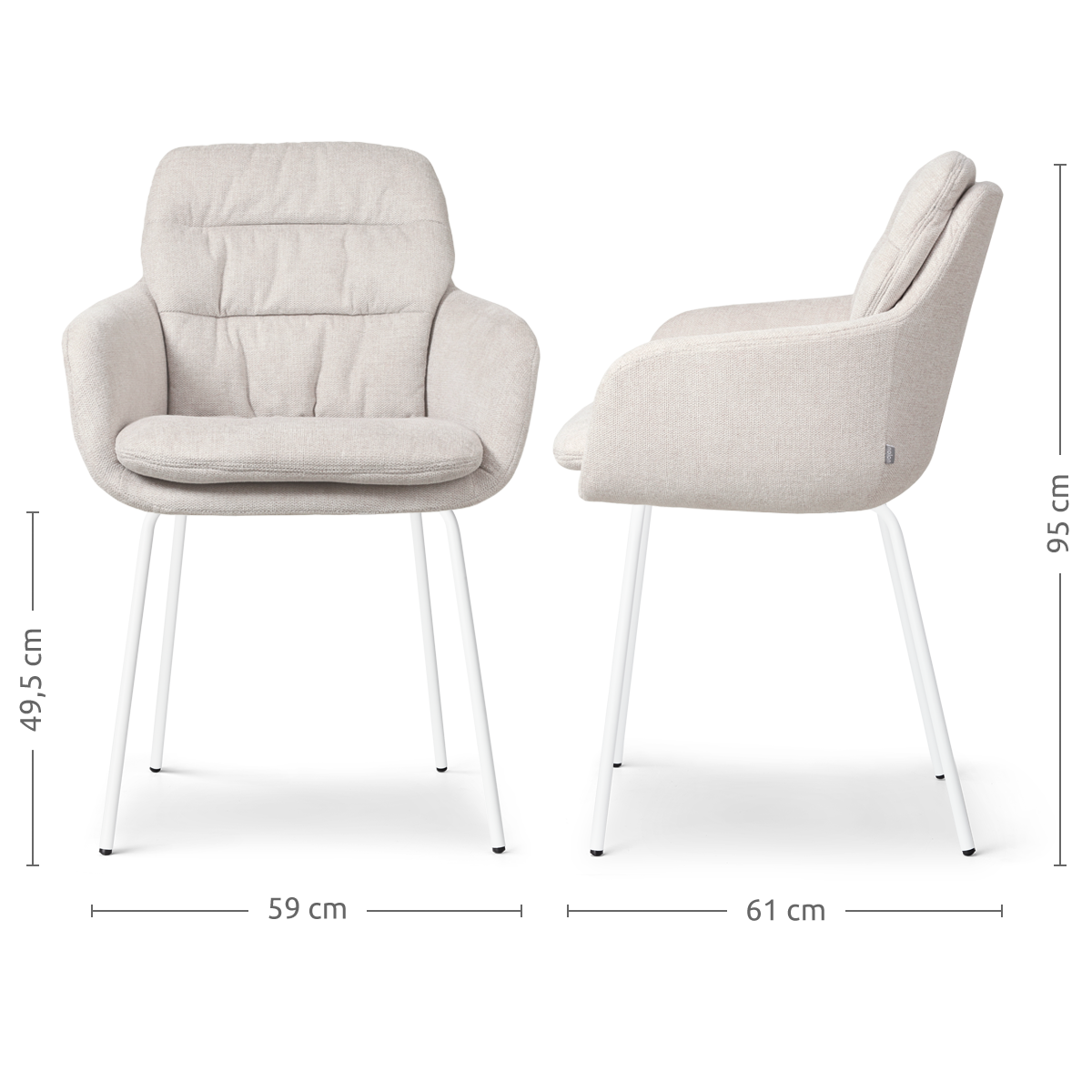 Deze eetkamerstoelen zijn niet alleen een lust voor het oog, maar ook een genot om op te zitten. De luxe zitting is ontworpen met een hoge rugleuning en armleuningen om het lichaam optimale ondersteuning te bieden tijdens uitgebreide diners. Het vaste zitkussen zorgt ervoor dat je extra zacht zit en ook de stoffen bekleding draagt bij aan het comfort. Het minimalistische metalen onderstel heeft slanke, ronde pootjes en vormt een perfect contrast met de zitting. De hoogwaardige materialen van deze eetkamerstoel garanderen duurzaamheid en langdurig gebruik. Met de Nora-Mia eetkamerstoel is comfortabel aan tafel zitten een zekerheid en zorg je daarnaast dus ook nog eens voor een stijlvolle toevoeging aan de eethoek.