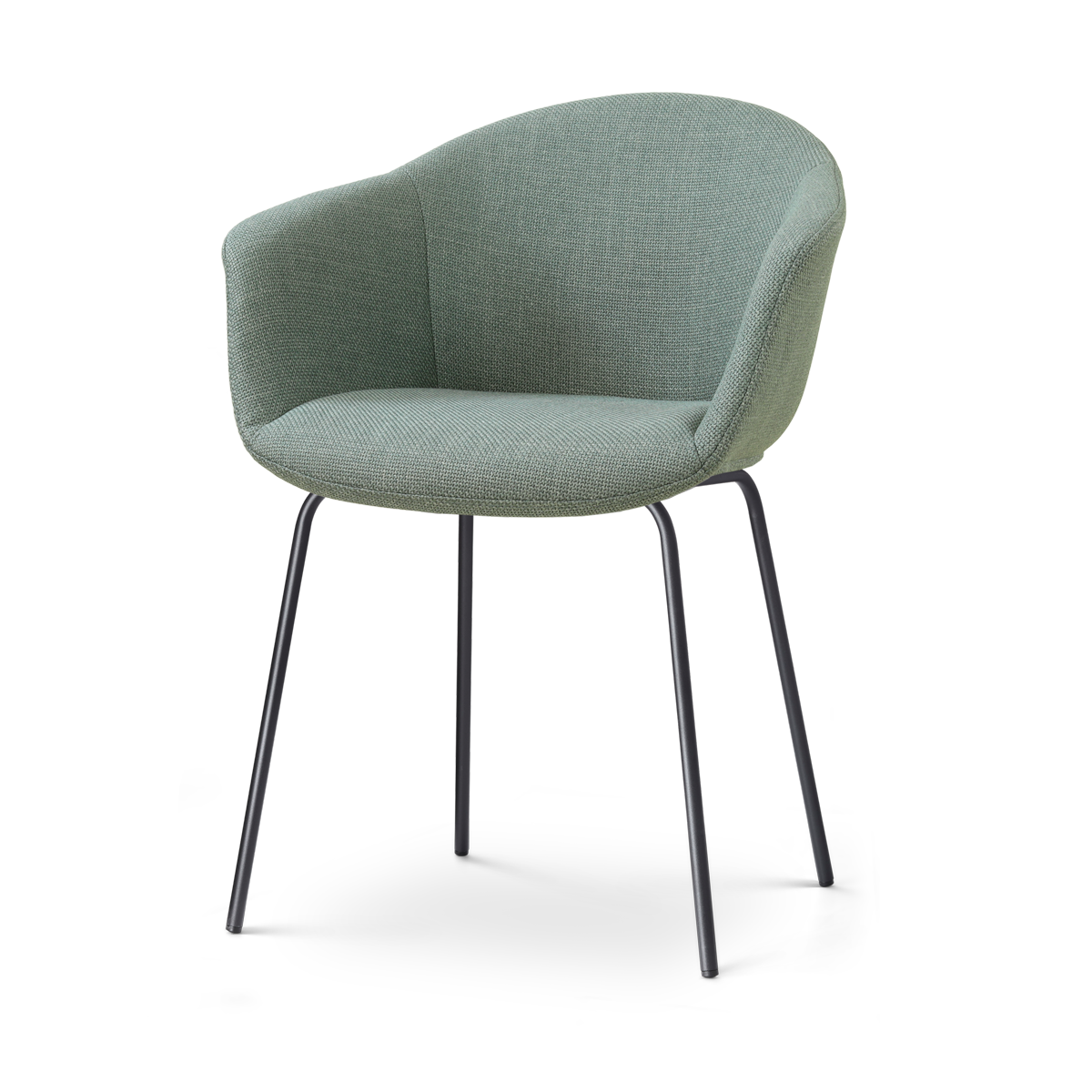 De Nora-Otis eetkamerstoel met armleuningen van Nolon is onderdeel van een mix en match collectie. Dit betekent dat zowel het onderstel als de zitting van deze stoel in diverse andere combinaties verkrijgbaar zijn. De Otis zitting is verkrijgbaar in verschillende stoffen en kleuren, maar het metalen Nora onderstel kan ook gecombineerd worden met één van de andere zittingen van Nolon. De Otis zitting kan juist weer worden gecombineerd met alle andere onderstellen, zoals een draaibaar onderstel of een onderstel met houten poten.