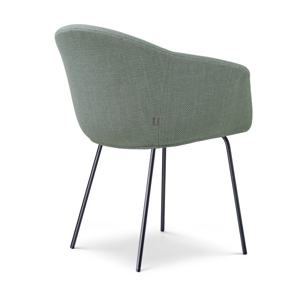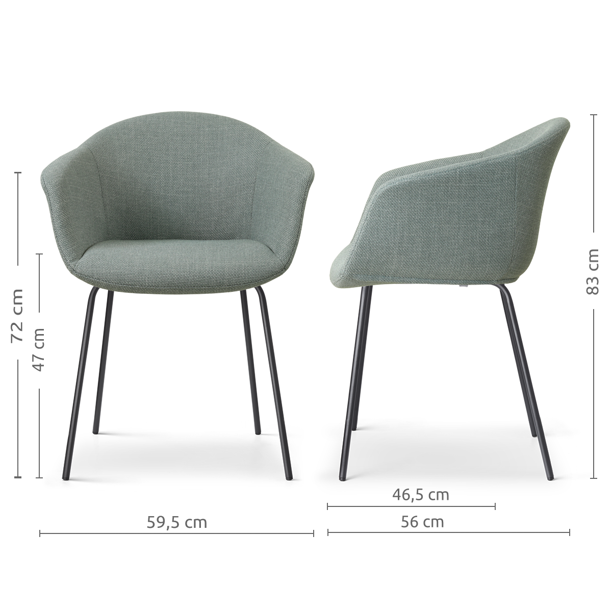 De Nora-Otis in saliegroen met zwarte poten geeft je eetkamer een eigentijds en natuurlijk accent. De zachte zitting en afgeronde armleuningen bieden comfort, terwijl het zwarte onderstel zorgt voor een modern en stoer contrast.