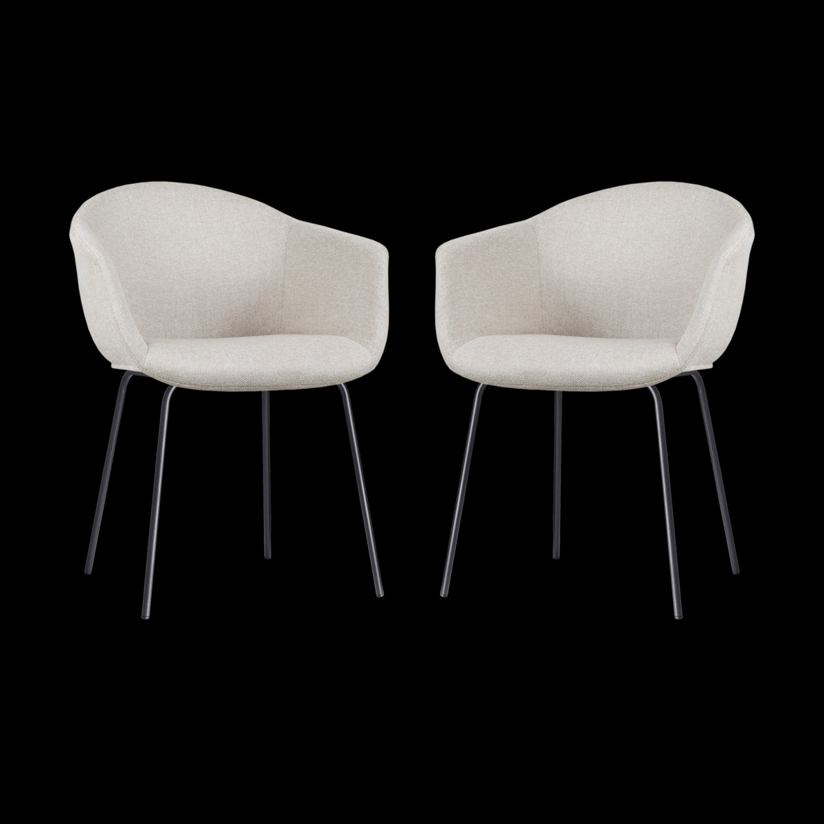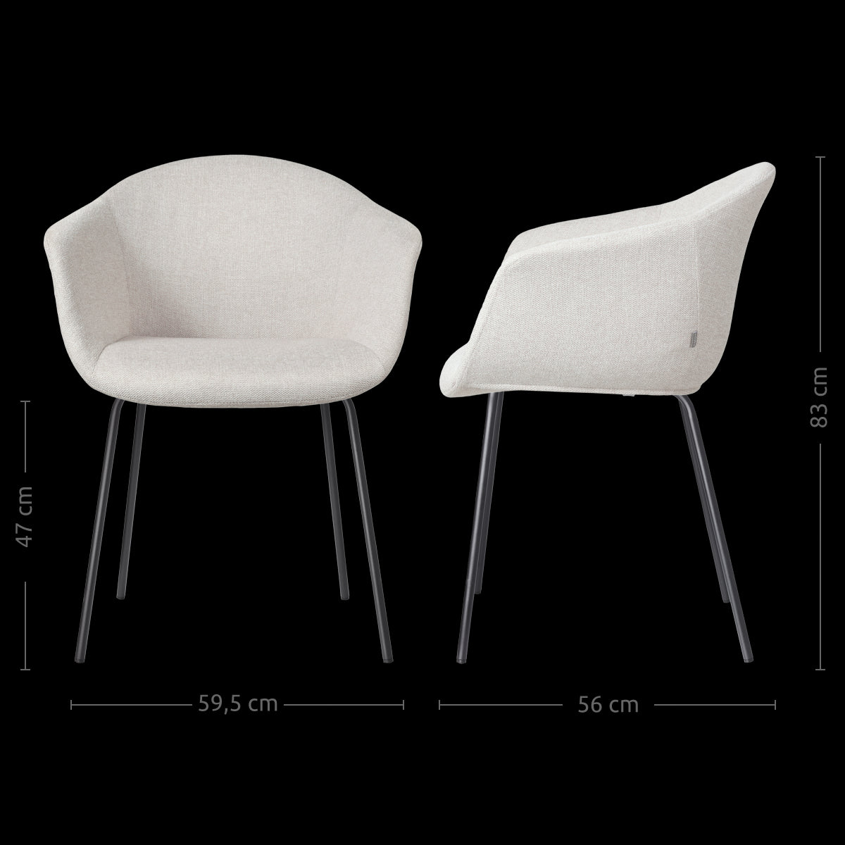 Deze eetkamerstoel heeft elegante uitstraling dankzij het ranke onderstel met vier ronde poten en een comfortabele zit door de ergonomisch gevormde kuipzitting. De stoffen bekleding zorgt voor een warm gevoel en maakt de eetkamer een uitnodigende plek voor vrienden en familie. Het stevige metalen onderstel zorgt ervoor dat de stoel stevig op de grond staat. De gestoffeerde zitting is voorzien van armleuningen om optimaal comfort te bieden tijdens gezellige diners of borrelavonden. In combinatie met de passieve zithouding van deze kuip zit je dus altijd ontspannen aan tafel. Maak een keuze uit één van de zes verschillende kleuren stoffen bekleding en geef jouw eethoek een stijlvolle upgrade.