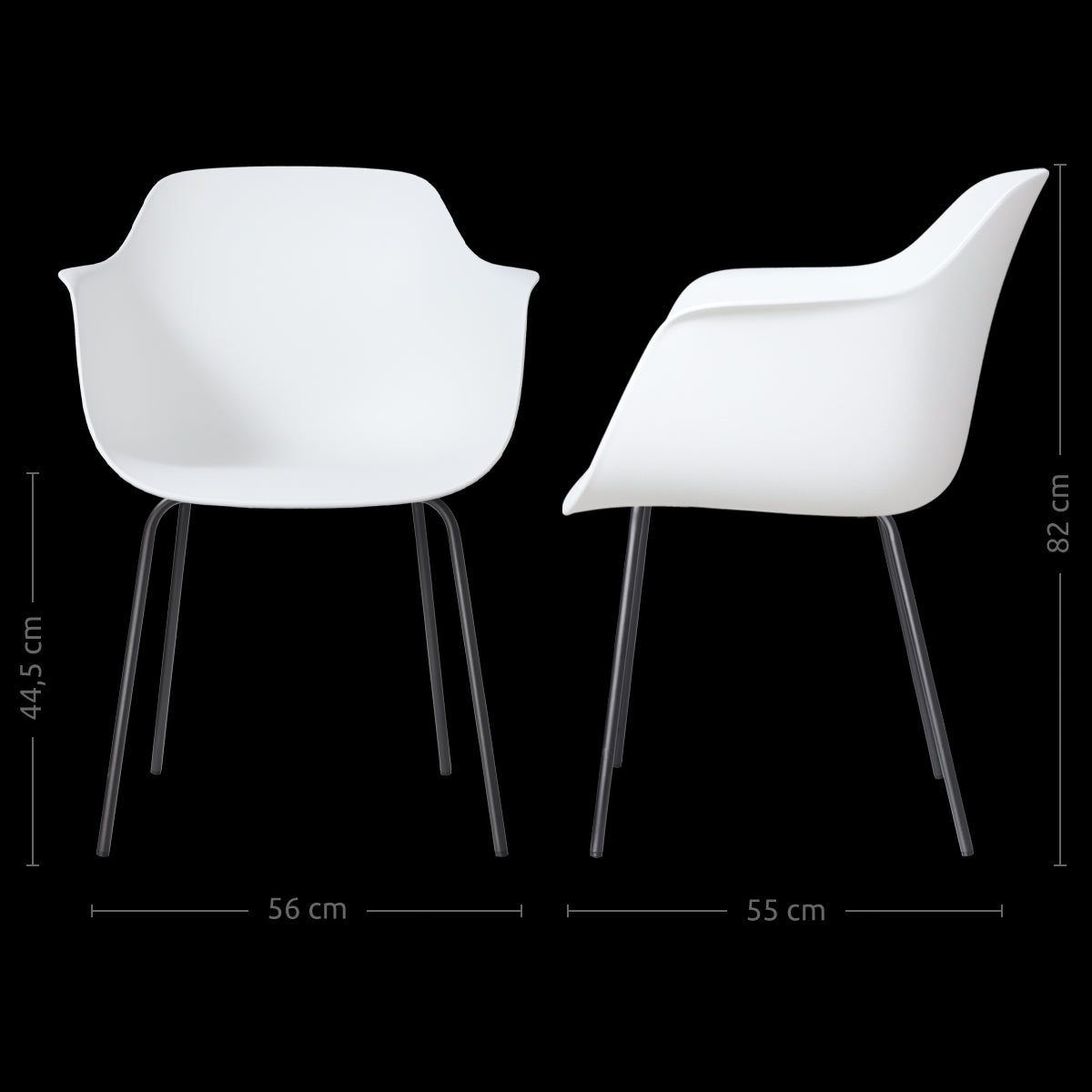Deze moderne kuipstoel combineert minimalistisch Scandinavisch design met praktisch comfort en is perfect voor liefhebbers van stijlvol en functioneel interieur. De niet-draaibare stoel heeft een comfortabele kunststof zitting, verkrijgbaar in wit, en rust op een stevig metalen onderstel met zwarte poten. Met een totale hoogte van 82 cm, een zithoogte van 45 cm en een zitdiepte van 46 cm, biedt de Nora-Puk een ontspannen zitervaring, ondersteund door schuin aflopende armleuningen. Dit maakt hem tot een ideale toevoeging aan elke eetkamer, waarbij het gebruik van duurzame materialen zorgt voor een lange levensduur en eenvoudig onderhoud. Door zijn strakke en elegante uitstraling past deze stoel moeiteloos in diverse interieurstijlen, terwijl hij ook functioneel en praktisch blijft voor dagelijks gebruik.