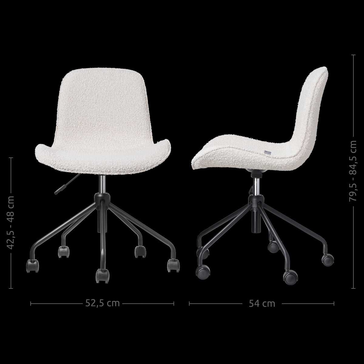 - Verstelbaar in zithoogte van 42,5 tot 48 cm hoog
