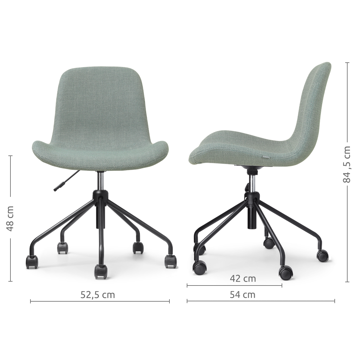 - Een bureaustoel zonder armleuningen past onder elk bureau