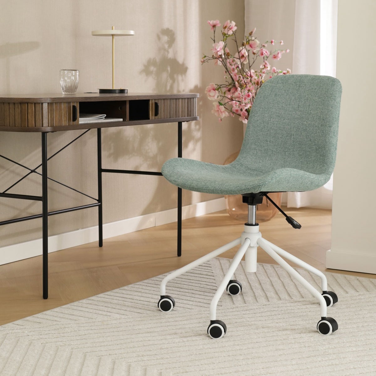 Deze bureaustoel is de ideale keuze als je op zoekt bent naar een exemplaar dat stijlvol, comfortabel en functioneel tegelijk is. Het metalen onderstel van deze bureaustoel is in hoogte verstelbaar, zodat je overal op de juiste zithoogte zit. De zitting kan 360 graden draaien op het onderstel en de stoel is voorzien van wieltjes, zodat je veel bewegingsvrijheid hebt aan je bureau. De zitting is bekleed met hoogwaardige stof voor een zachte zitervaring, en heeft subtiele rondingen en een gevleugeld zitvlak voor een hoog zitcomfort. Dankzij de actieve zithouding zit je rechtop achter je bureau. Maak een keuze uit de verschillende opties voor de bekleding, waaronder teddy en bouclé, en geef jouw werkruimte een stijlvolle upgrade.