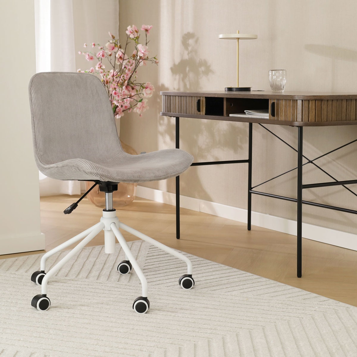 Deze bureaustoelen zijn de ideale keuze als je op zoekt bent naar een exemplaar dat stijlvol, comfortabel en functioneel tegelijk is. Het metalen onderstel van deze bureaustoel is in hoogte verstelbaar, zodat je overal op de juiste zithoogte zit. De zitting kan 360 graden draaien op het onderstel en de stoel is voorzien van wieltjes, zodat je veel bewegingsvrijheid hebt aan je bureau. De zitting is bekleed met hoogwaardige stof voor een zachte zitervaring, en heeft subtiele rondingen en een gevleugeld zitvlak voor een hoog zitcomfort. Dankzij de actieve zithouding zit je rechtop achter je bureau. Maak een keuze uit de verschillende opties voor de bekleding, waaronder teddy en ribstof, en geef jouw werkruimte een stijlvolle upgrade.
