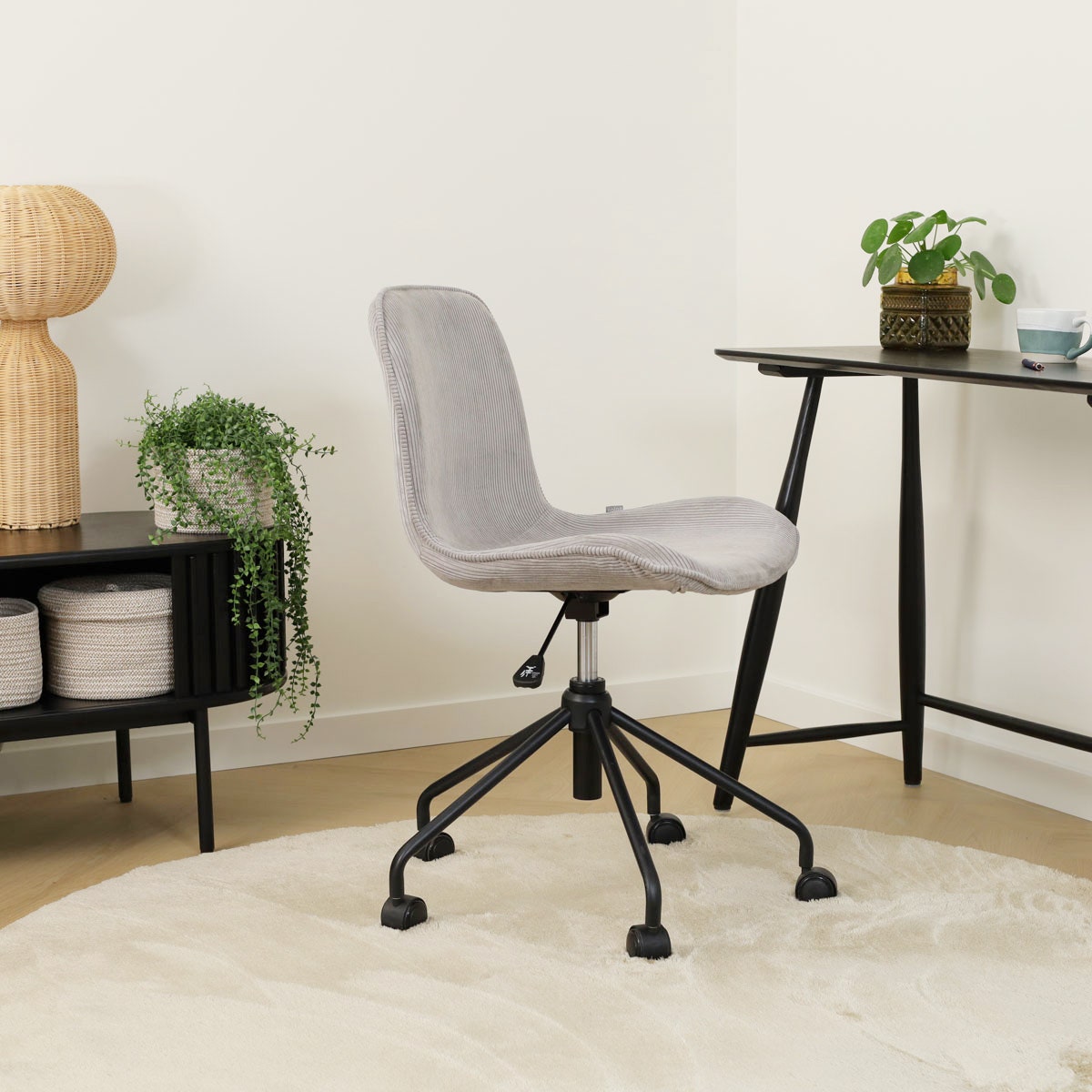 Deze bureaustoelen zijn de ideale keuze als je op zoekt bent naar een exemplaar dat stijlvol, comfortabel en functioneel tegelijk is. Het metalen onderstel van deze bureaustoel is in hoogte verstelbaar, zodat je overal op de juiste zithoogte zit. De zitting kan 360 graden draaien op het onderstel en de stoel is voorzien van wieltjes, zodat je veel bewegingsvrijheid hebt aan je bureau. De zitting is bekleed met hoogwaardige stof voor een zachte zitervaring, en heeft subtiele rondingen en een gevleugeld zitvlak voor een hoog zitcomfort. Dankzij de actieve zithouding zit je rechtop achter je bureau. Maak een keuze uit de verschillende opties voor de bekleding, waaronder teddy en ribstof, en geef jouw werkruimte een stijlvolle upgrade.