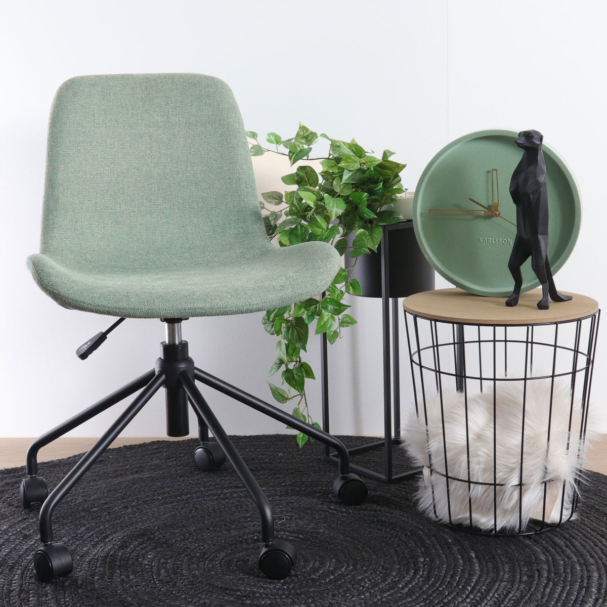 Deze bureaustoelen zijn de ideale keuze als je op zoekt bent naar een exemplaar dat stijlvol, comfortabel en functioneel tegelijk is. Het metalen onderstel van deze bureaustoel is in hoogte verstelbaar, zodat je overal op de juiste zithoogte zit. De zitting kan 360 graden draaien op het onderstel en de stoel is voorzien van wieltjes, zodat je veel bewegingsvrijheid hebt aan je bureau. De zitting is bekleed met hoogwaardige stof voor een zachte zitervaring, en heeft subtiele rondingen en een gevleugeld zitvlak voor een hoog zitcomfort. Dankzij de actieve zithouding zit je rechtop achter je bureau. Maak een keuze uit de verschillende opties voor de bekleding, waaronder teddy en ribstof, en geef jouw werkruimte een stijlvolle upgrade.