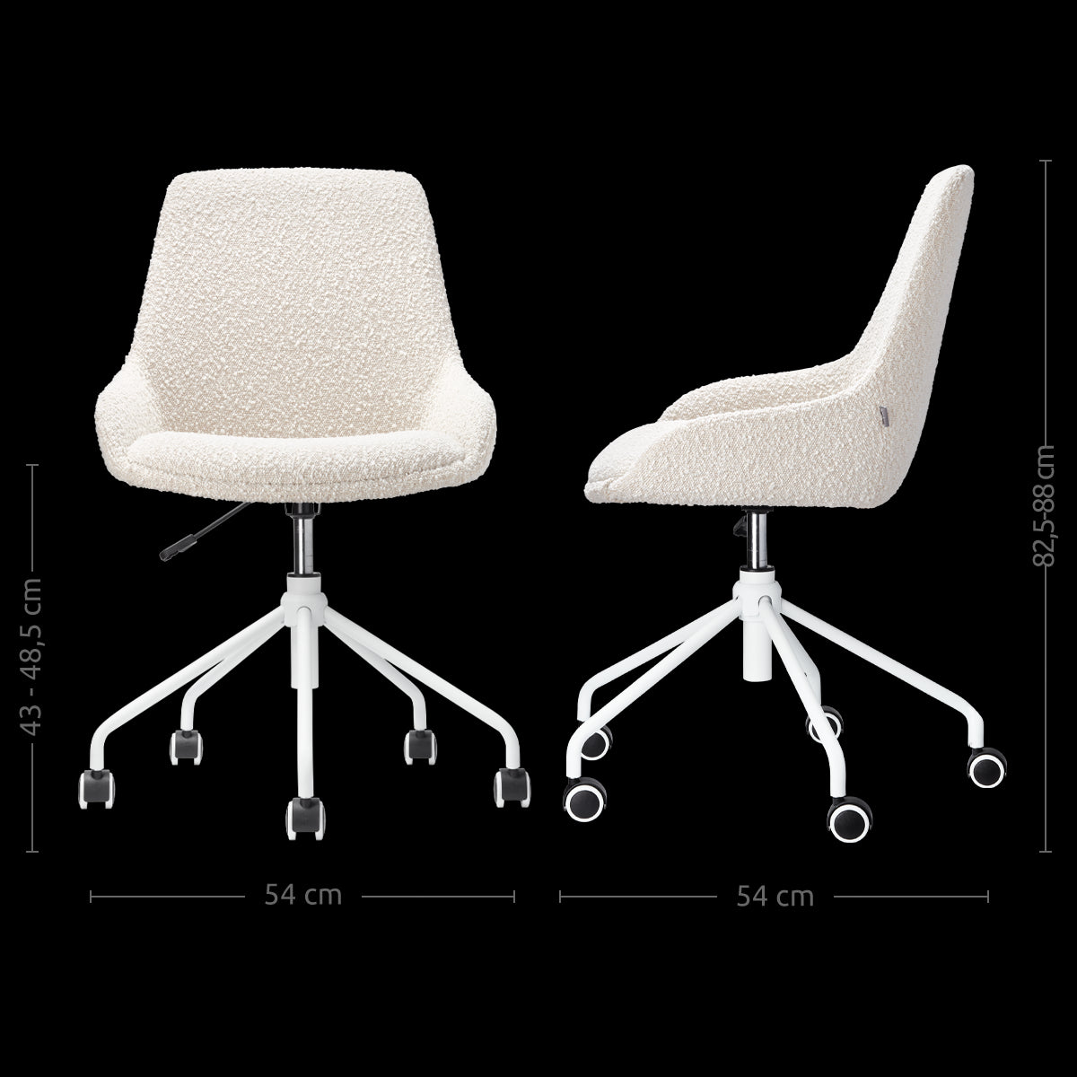 De Nout-Isa bureaustoel bouclé beige met wit onderstel is de perfecte toevoeging aan jouw thuiswerkplek.