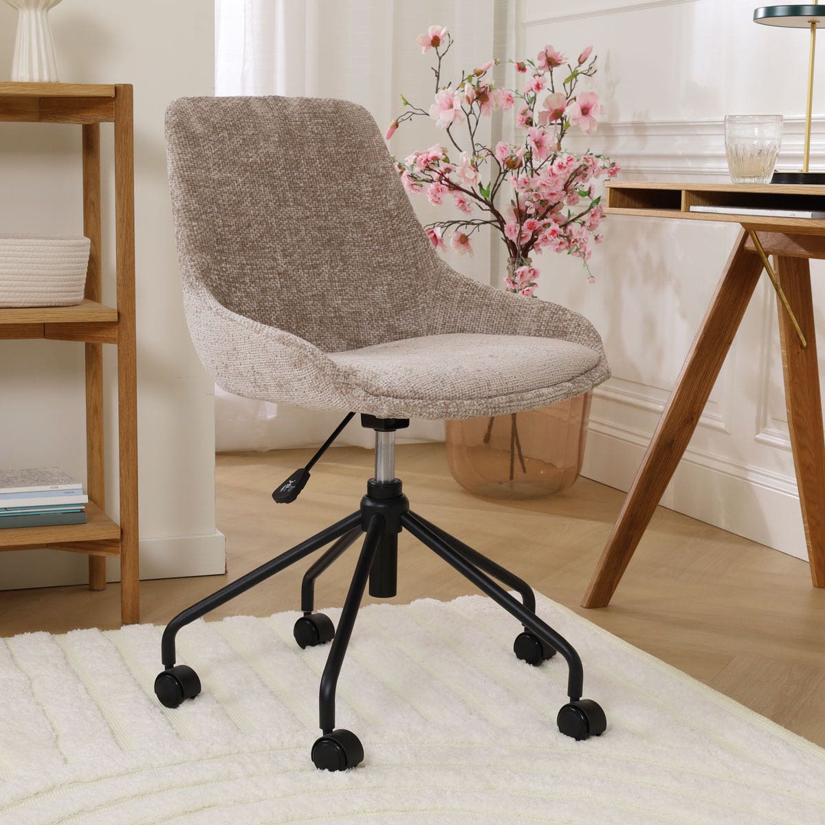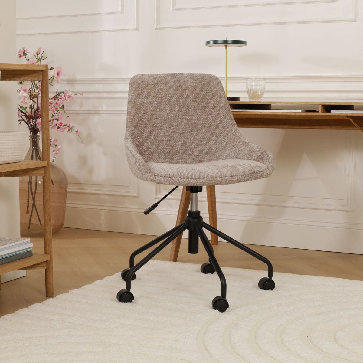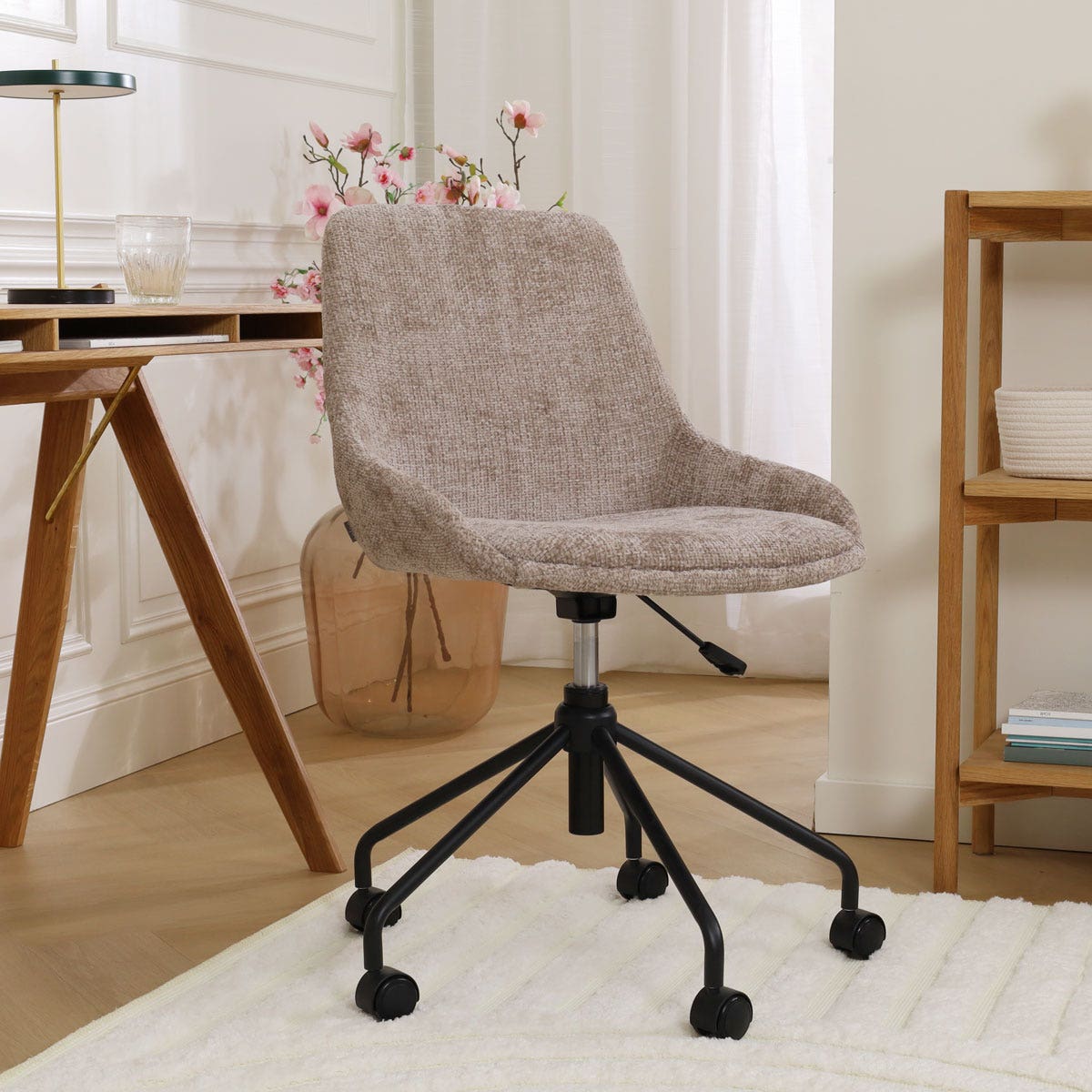 Ontdek de Nout-Isa bureaustoel in een stijlvol bruin ontwerp met een zwart metalen onderstel.