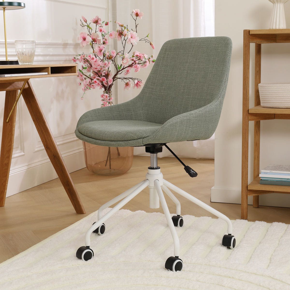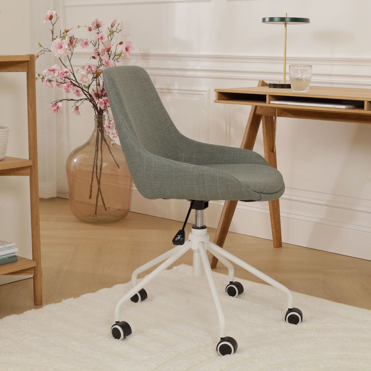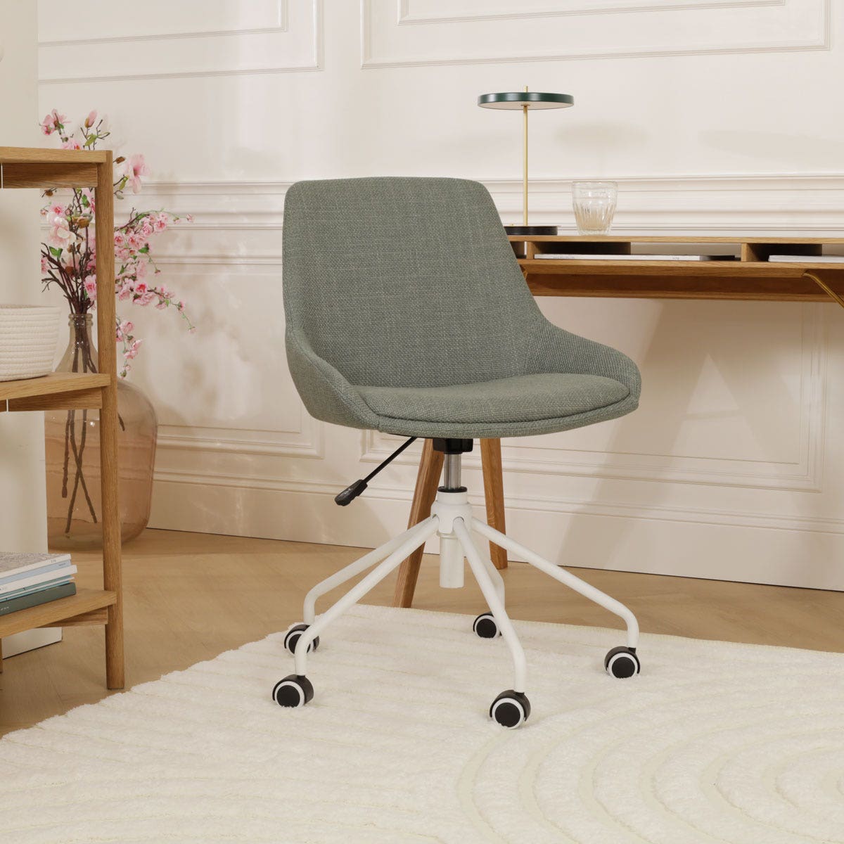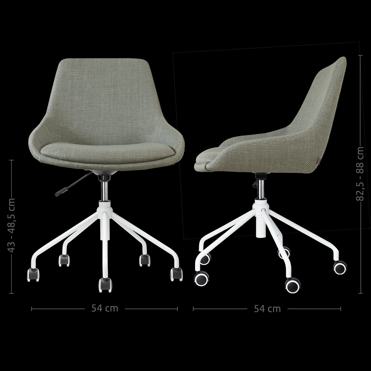 De Nout-Isa bureaustoel in een stijlvolle saliegroene bekleding en een strak wit onderstel van Nolon is de perfecte aanvulling voor je thuiswerkplek.