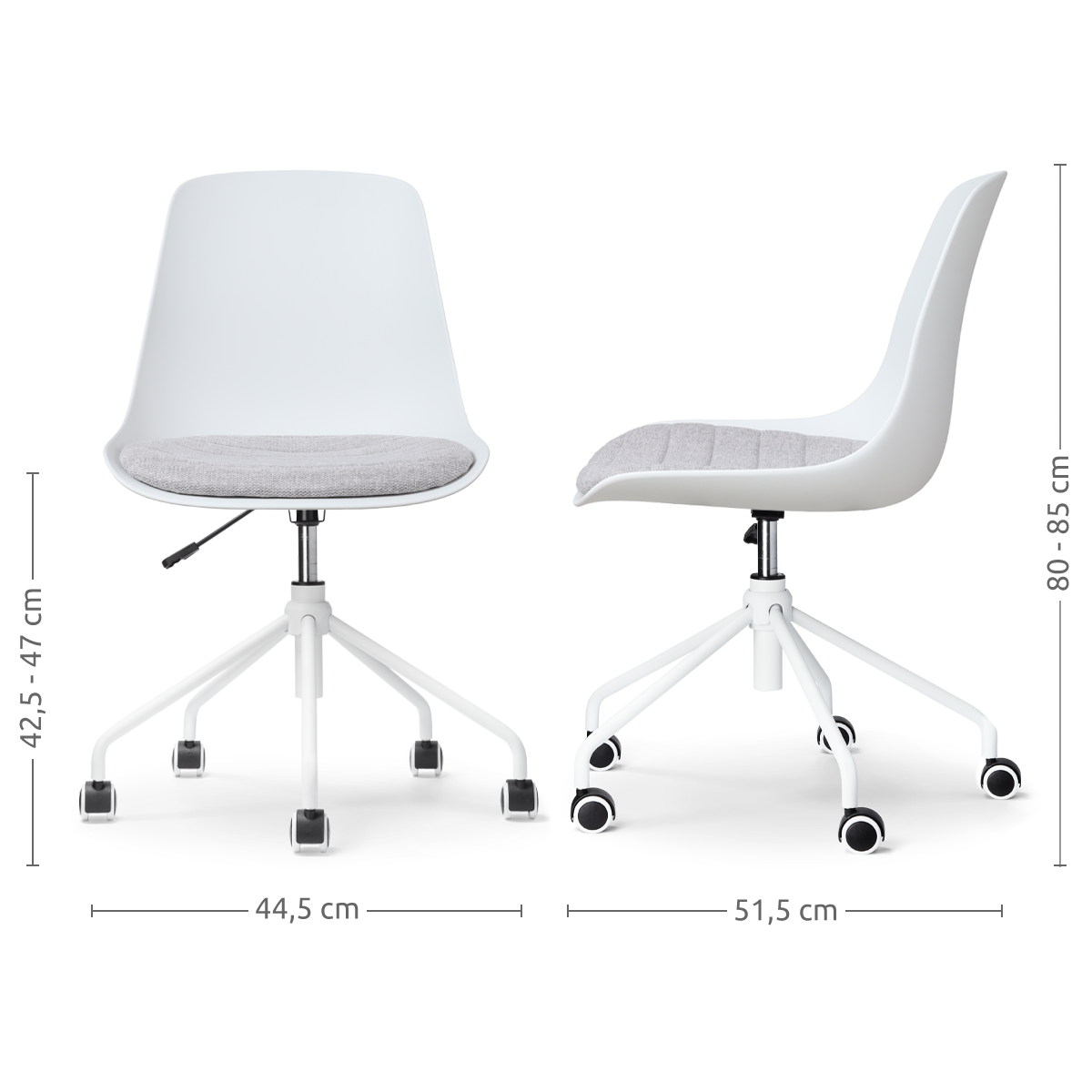 - De zithoogte is verstelbaar van 41 tot 46,5 cm