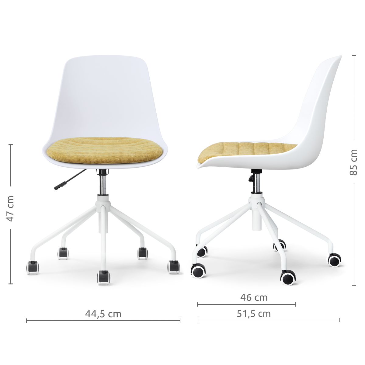 - De zithoogte is verstelbaar van 41 tot 46,5 cm